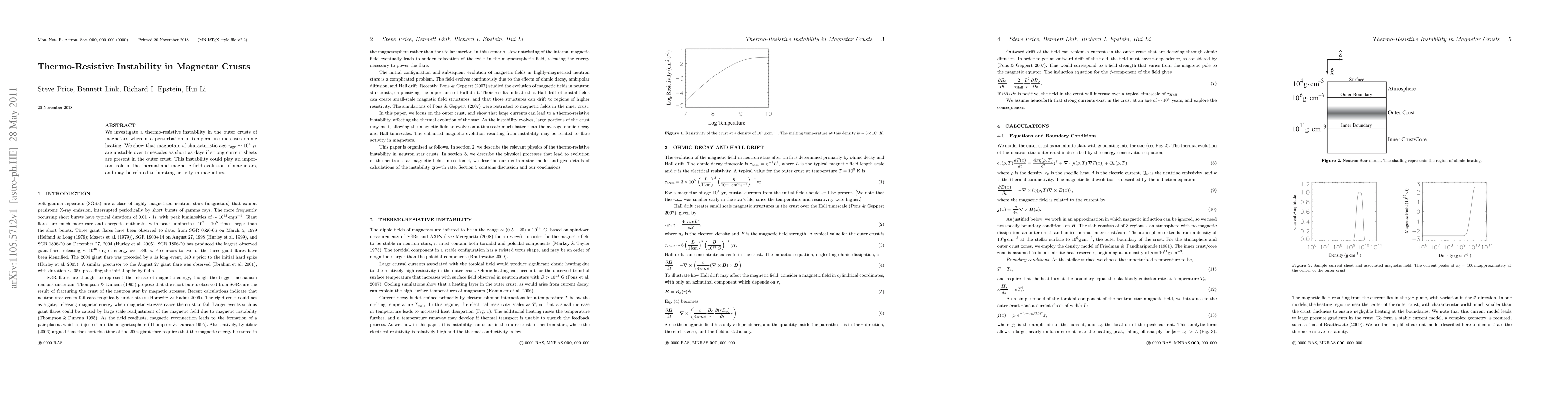 This study explores thermo-resistive instability in magnetar crusts, demonstrating that temperature perturbations can amplify ohmic heating, leading to instability in magnetars with ages around 10,000 years. The presence of strong current sheets in the outer crust can trigger this instability within days, potentially influencing magnetar thermal and magnetic evolution and possibly linking to their bursting activity.