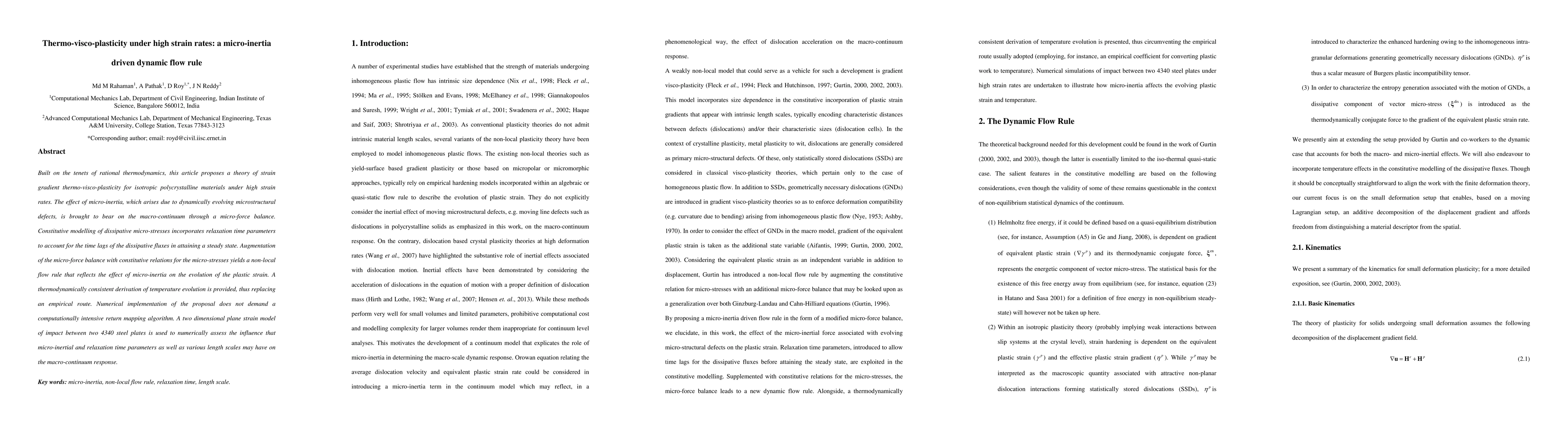 This paper proposes a theory for strain gradient thermo-visco-plasticity in materials under high strain rates, incorporating micro-inertia effects, and suggests a non-local flow rule that reflects these effects.