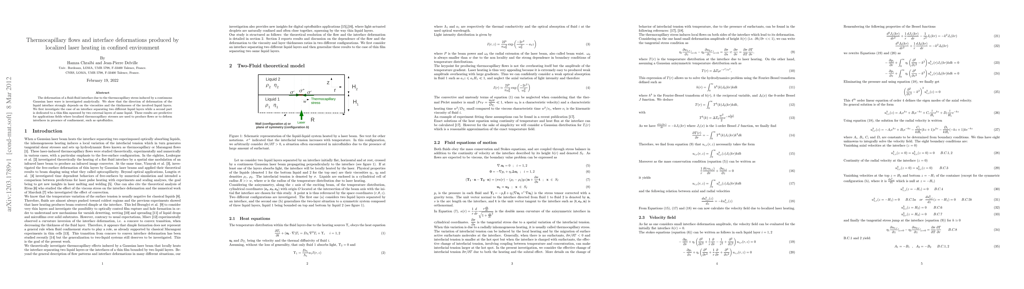 This paper investigates how localized laser heating affects fluid interfaces in confined environments, revealing a strong dependency on liquid viscosities and layer thicknesses.