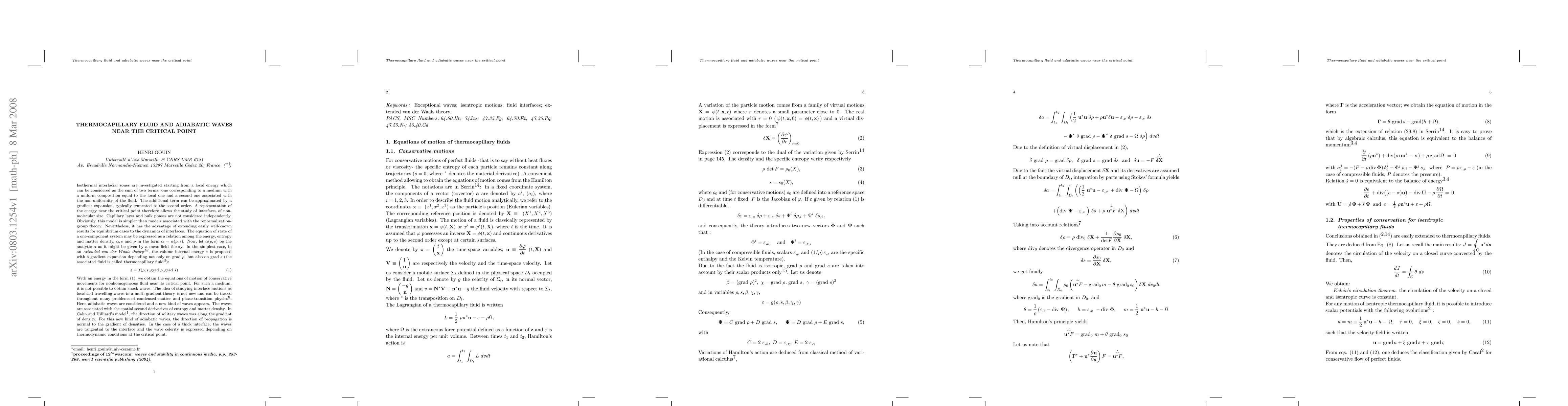 The paper extends the Cahn-Hilliard model of capillarity by incorporating an internal energy that depends on both density and entropy gradients, leading to new insights into the behavior of thermocapillary fluids near the critical point.