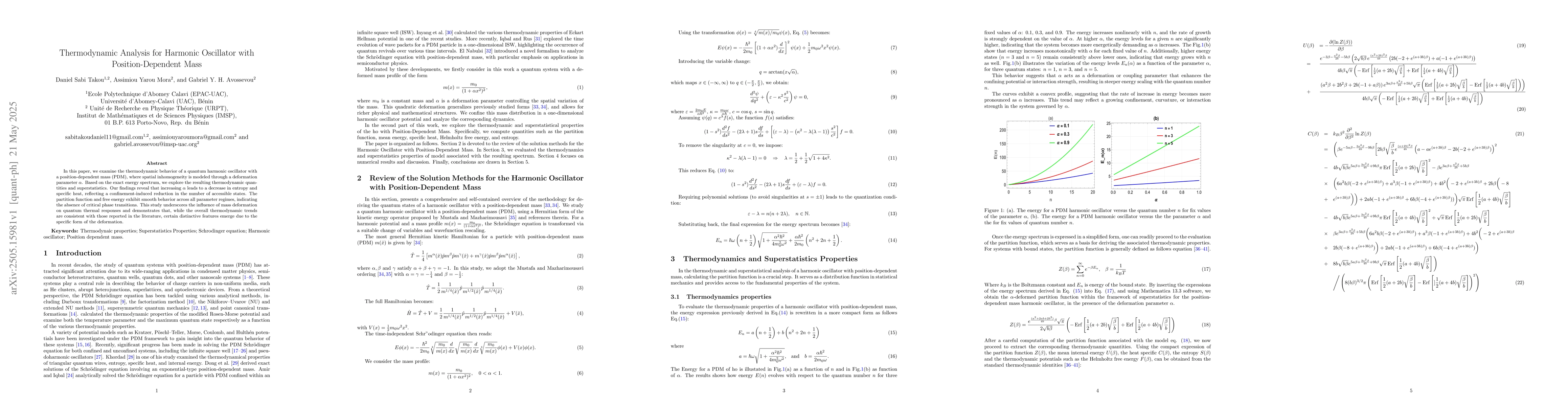 The methodology involves examining the thermodynamic behavior of a quantum harmonic oscillator with a position-dependent mass, utilizing an exact energy spectrum and a deformation parameter α to model spatial inhomogeneity.