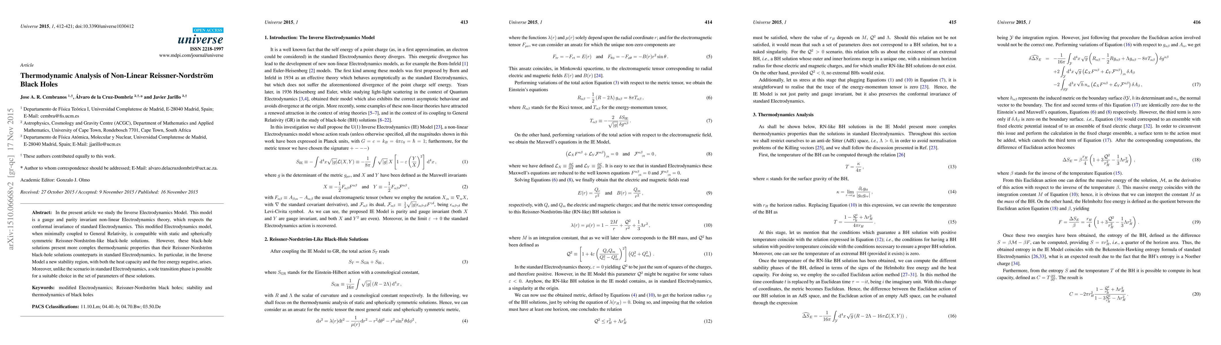 Researchers studied a modified Electrodynamics model that creates complex black-hole solutions with negative heat capacity and free energy, offering new stability regions not seen in standard models.