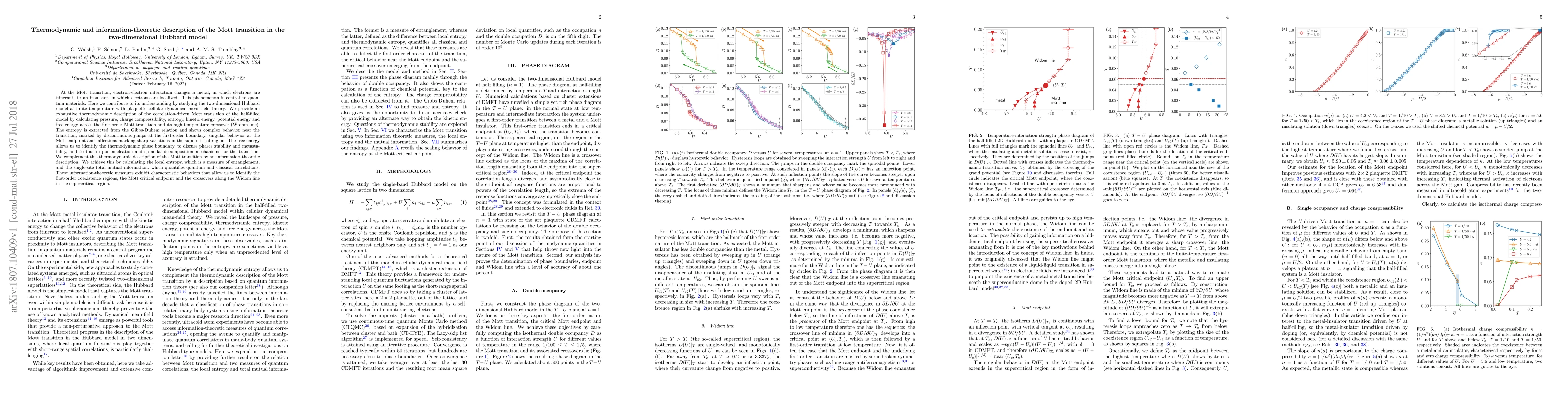 The paper presents an advanced application of plaquette CDMFT to study the thermodynamics and information theory aspects of the Mott transition in the two-dimensional Hubbard model, providing detailed calculations of thermodynamic properties and entanglement measures.