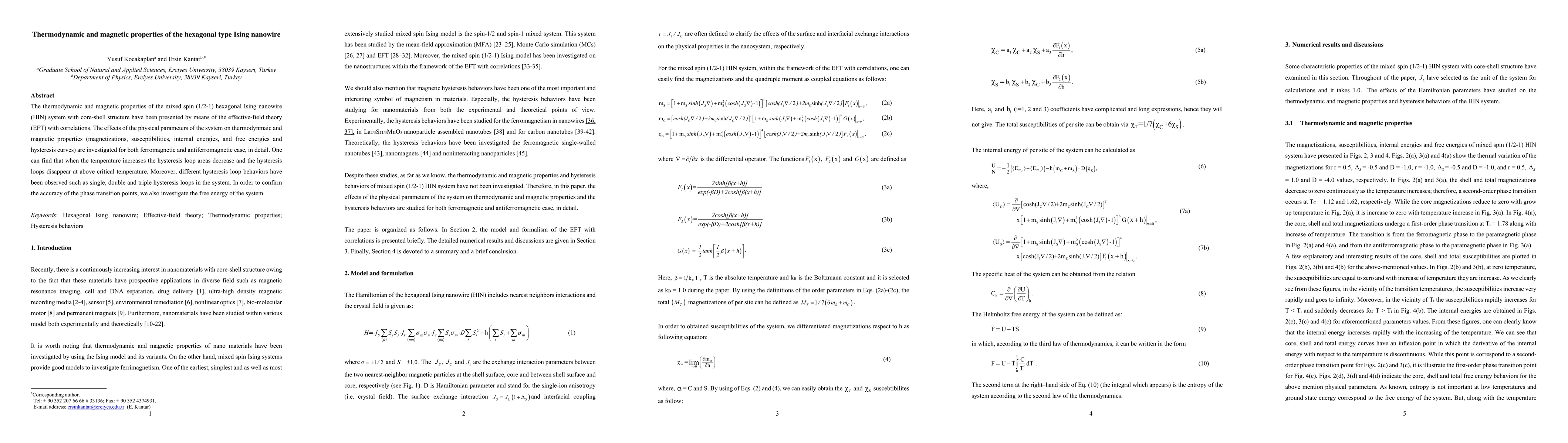 The thermodynamic and magnetic properties of the mixed spin (1/2-1) hexagonal Ising nanowire (HIN) system with core-shell structure have been presented by means of the effective-field theory (EFT) with correlations. The effects of the physical parameters of the system on thermodynmaic and magnetic properties (magnetizations, susceptibilities, internal energies, and free energies and hysteresis curves) are investigated for both ferromagnetic and antiferromagnetic case, in detail. One can find that when the temperature increases the hysteresis loop areas decrease and the hysteresis loops disappear at above critical temperature. Moreover, different hysteresis loop behaviors have been observed such as single, double and triple hysteresis loops in the system. In order to confirm the accuracy of the phase transition points, we also investigate the free energy of the system.