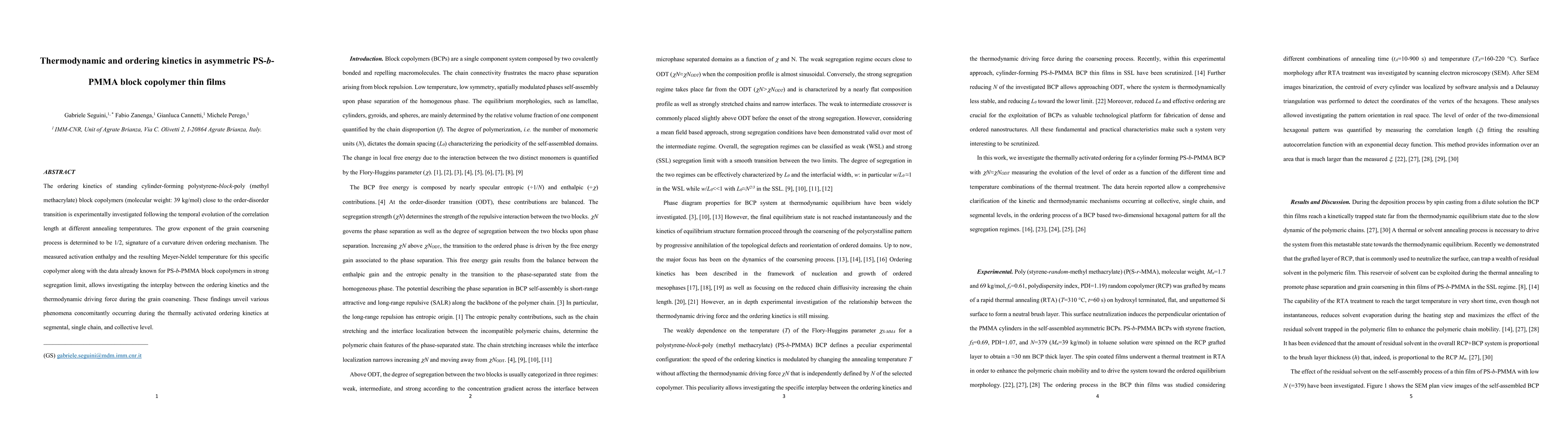 This study investigates the ordering kinetics of polystyrene-block-poly(methyl methacrylate) copolymer thin films near the order-disorder transition, revealing a grain coarsening grow exponent of 1/2 indicative of curvature-driven mechanisms. The interplay between thermodynamic driving forces and kinetic processes during thermally activated ordering is explored.