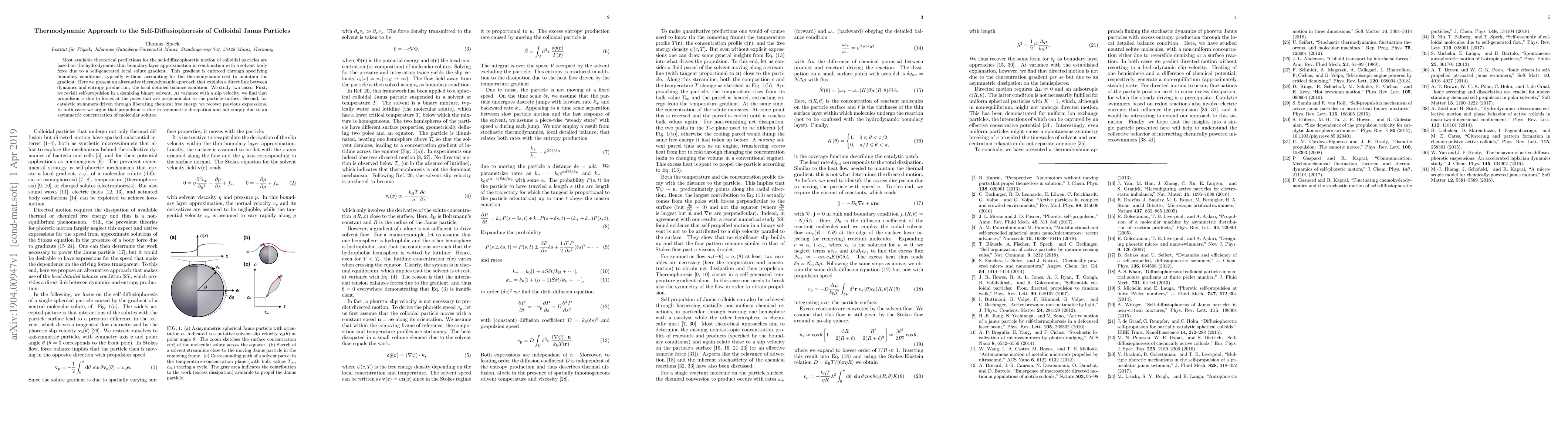 Researchers develop a thermodynamic approach to understand how colloidal Janus particles move in a binary solvent, finding propulsion is due to asymmetric dissipation rather than solute concentration.
