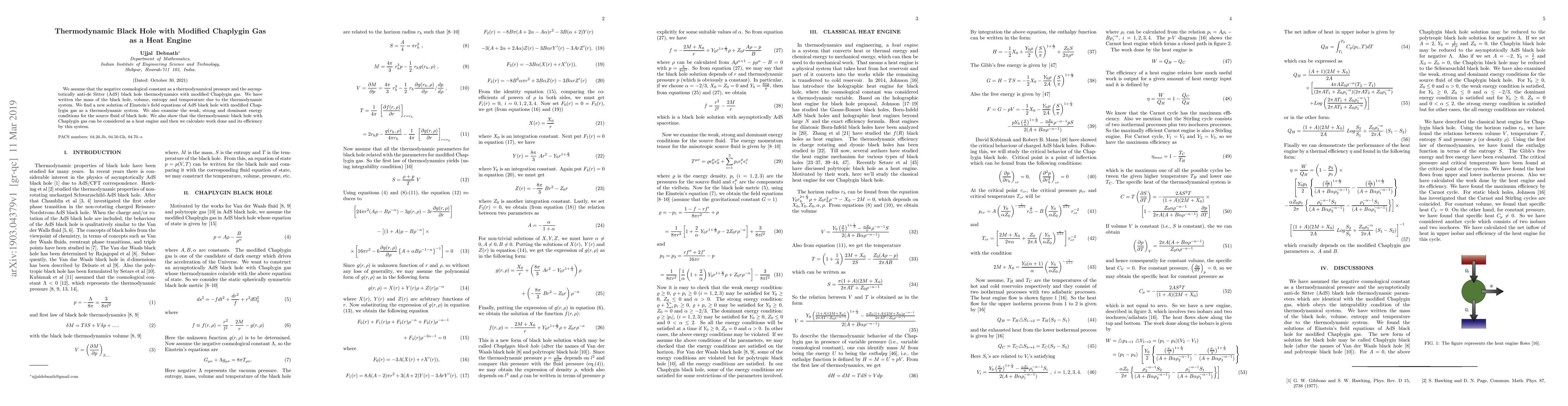 The paper presents a novel approach to black hole thermodynamics by integrating modified Chaplygin gas and demonstrating its application as a heat engine, providing explicit solutions and examining energy conditions.