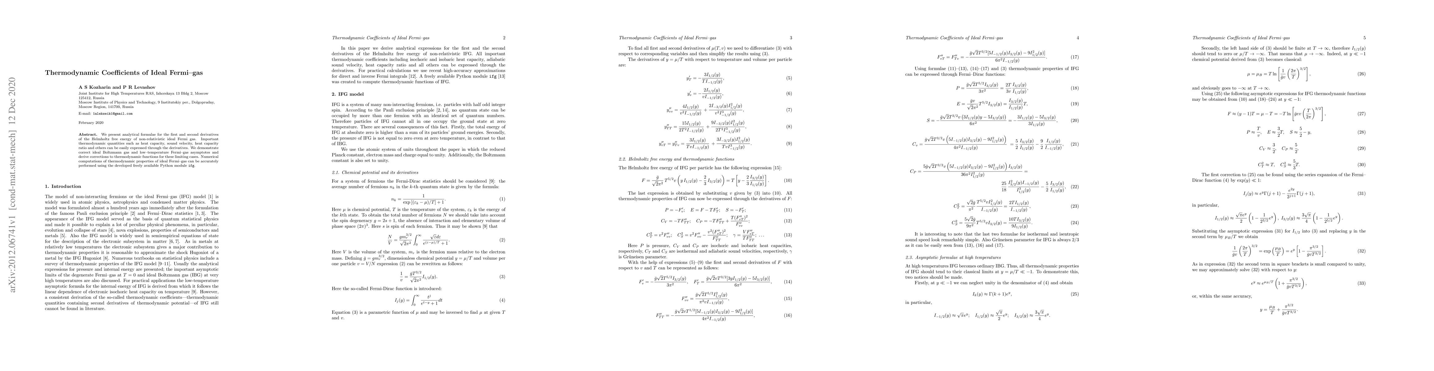 This paper provides analytical expressions for the first and second derivatives of the Helmholtz free energy of an ideal Fermi-gas, enabling the derivation of key thermodynamic quantities. It also includes corrections for ideal Boltzmann gas and low-temperature Fermi-gas limits, and offers a Python module for accurate numerical computations.