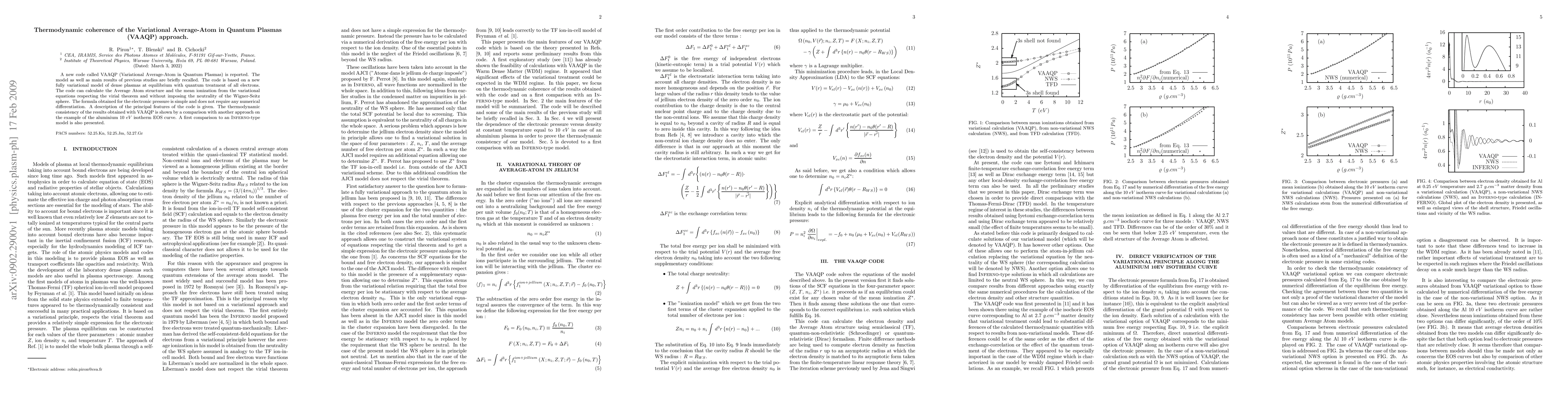A new code called VAAQP (Variational Average-Atom in Quantum Plasmas) is reported. The model as well as main results of previous studies are briefly recalled. The code is based on a new fully variational model of dense plasmas at equilibrium with quantum treatment of all electrons. The code can calculate the Average Atom structure and the mean ionization from the variational equations respecting the virial theorem and without imposing the neutrality of the Wigner-Seitz sphere. The formula obtained for the electronic pressure is simple and does not require any numerical differentiation. A description of the principal features of the code is given. The thermodynamic consistency of the results obtained with VAAQP is shown by a comparison with another approach on the example of the aluminium 10 eV isotherm EOS curve. A first comparison to an INFERNO-type model is also presented.