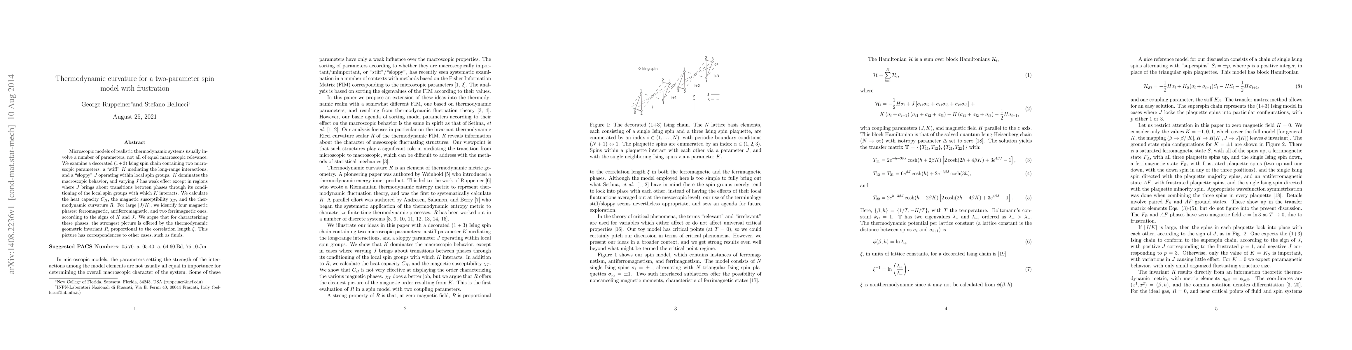 Researchers studied a model with two parameters that affect its behavior, finding four magnetic phases and proposing thermodynamic curvature as a key invariant for characterizing these phases.