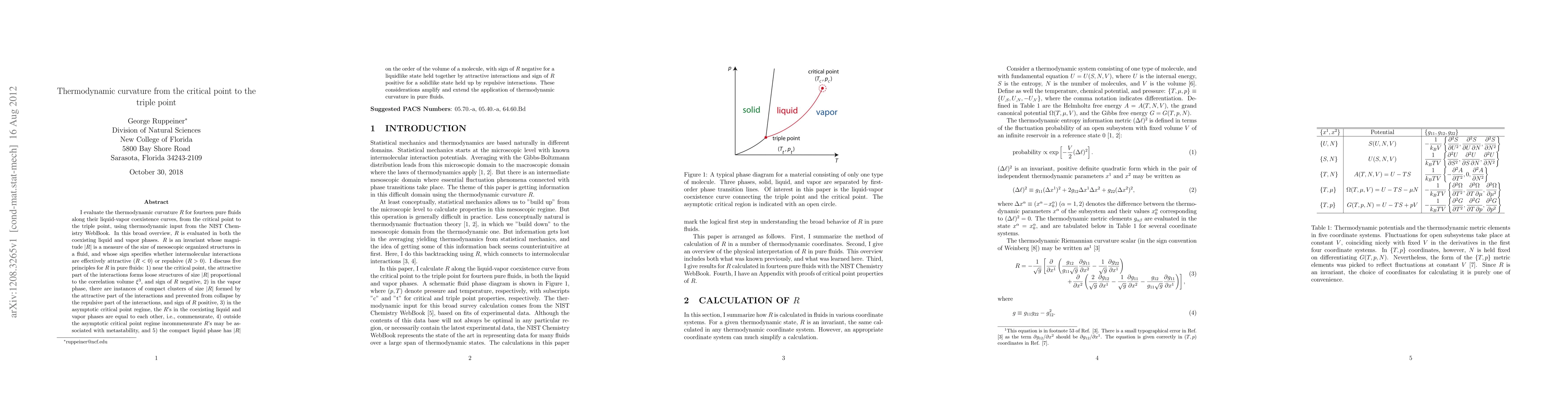 I evaluate the thermodynamic curvature $R$ for fourteen pure fluids along their liquid-vapor coexistence curves, from the critical point to the triple point, using thermodynamic input from the NIST Chemistry WebBook. In this broad overview, $R$ is evaluated in both the coexisting liquid and vapor phases. $R$ is an invariant whose magnitude $|R|$ is a measure of the size of mesoscopic organized structures in a fluid, and whose sign specifies whether intermolecular interactions are effectively attractive ($R<0$) or repulsive ($R>0$). I discuss five principles for $R$ in pure fluids: 1) near the critical point, the attractive part of the interactions forms loose structures of size $|R|$ proportional to the correlation volume $\xi^3$, and sign of $R$ negative, 2) in the vapor phase, there are instances of compact clusters of size $|R|$ formed by the attractive part of the interactions and prevented from collapse by the repulsive part of the interactions, and sign of $R$ positive, 3) in the asymptotic critical point regime, the $R$'s in the coexisting liquid and vapor phases are equal to each other, i.e., commensurate, 4) outside the asymptotic critical point regime incommensurate $R$'s may be associated with metastability, and 5) the compact liquid phase has $|R|$ on the order of the volume of a molecule, with sign of $R$ negative for a liquidlike state held together by attractive interactions and sign of $R$ positive for a solidlike state held up by repulsive interactions. These considerations amplify and extend the application of thermodynamic curvature in pure fluids.