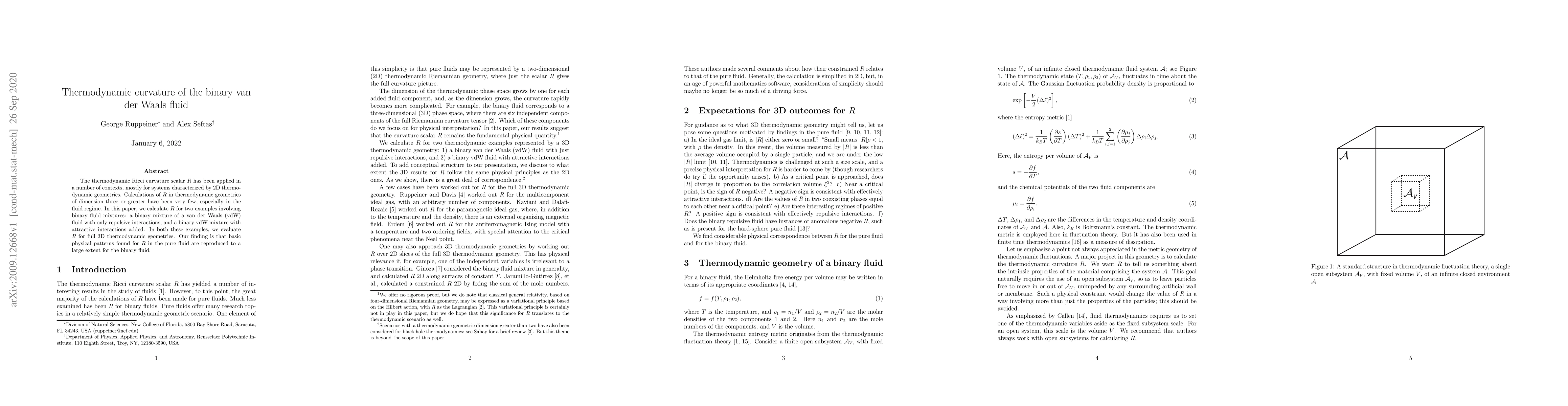 The thermodynamic Ricci curvature scalar $R$ has been applied in a number of contexts, mostly for systems characterized by 2D thermodynamic geometries. Calculations of $R$ in thermodynamic geometries of dimension three or greater have been very few, especially in the fluid regime. In this paper, we calculate $R$ for two examples involving binary fluid mixtures: a binary mixture of a van der Waals (vdW) fluid with only repulsive interactions, and a binary vdW mixture with attractive interactions added. In both these examples, we evaluate $R$ for full 3D thermodynamic geometries. Our finding is that basic physical patterns found for $R$ in the pure fluid are reproduced to a large extent for the binary fluid.