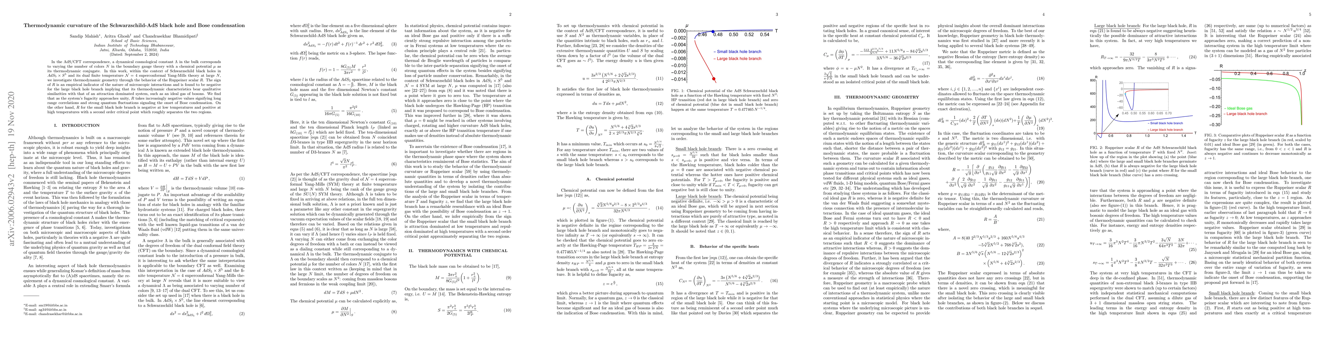 In the AdS/CFT correspondence, a dynamical cosmological constant $\Lambda$ in the bulk corresponds to varying the number of colors $N$ in the boundary gauge theory with a chemical potential $\mu$ as its thermodynamic conjugate. In this work, within the context of Schwarzschild black holes in $AdS_5 \times S^5$ and its dual finite temperature $\mathcal{N}=4$ superconformal Yang-Mills theory at large $N$, we investigate thermodynamic geometry through the behavior of the Ruppeiner scalar $R$. The sign of $R$ is an empirical indicator of the nature of microscopic interactions and is found to be negative for the large black hole branch implying that its thermodynamic characteristics bear qualitative similarities with that of an attraction dominated system, such as an ideal gas of bosons. We find that as the system's fugacity approaches unity, $R$ takes increasingly negative values signifying long range correlations and strong quantum fluctuations signaling the onset of Bose condensation. On the other hand, $R$ for the small black hole branch is negative at low temperatures and positive at high temperatures with a second order critical point which roughly separates the two regions.