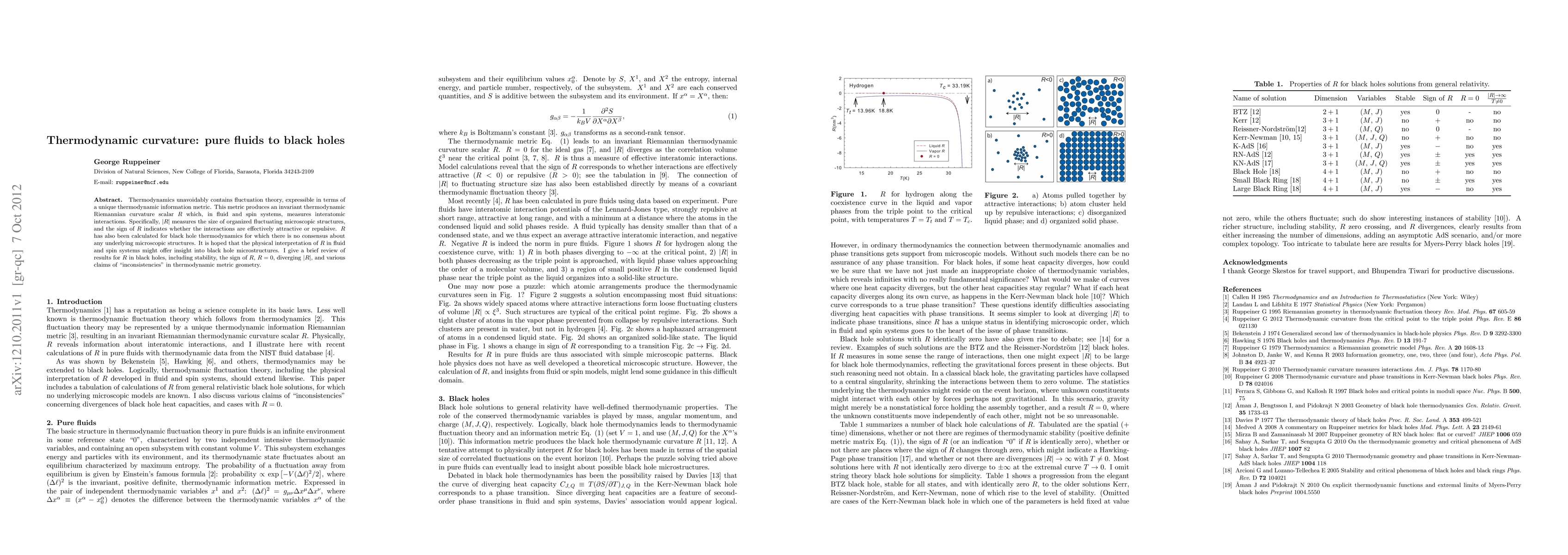 Thermodynamics unavoidably contains fluctuation theory, expressible in terms of a unique thermodynamic information metric. This metric produces an invariant thermodynamic Riemannian curvature scalar $R$ which, in fluid and spin systems, measures interatomic interactions. Specifically, $|R|$ measures the size of organized fluctuating microscopic structures, and the sign of $R$ indicates whether the interactions are effectively attractive or repulsive. $R$ has also been calculated for black hole thermodynamics for which there is no consensus about any underlying microscopic structures. It is hoped that the physical interpretation of $R$ in fluid and spin systems might offer insight into black hole microstructures. I give a brief review of results for $R$ in black holes, including stability, the sign of $R$, R=0, diverging |R|, and various claims of "inconsistencies" in thermodynamic metric geometry.