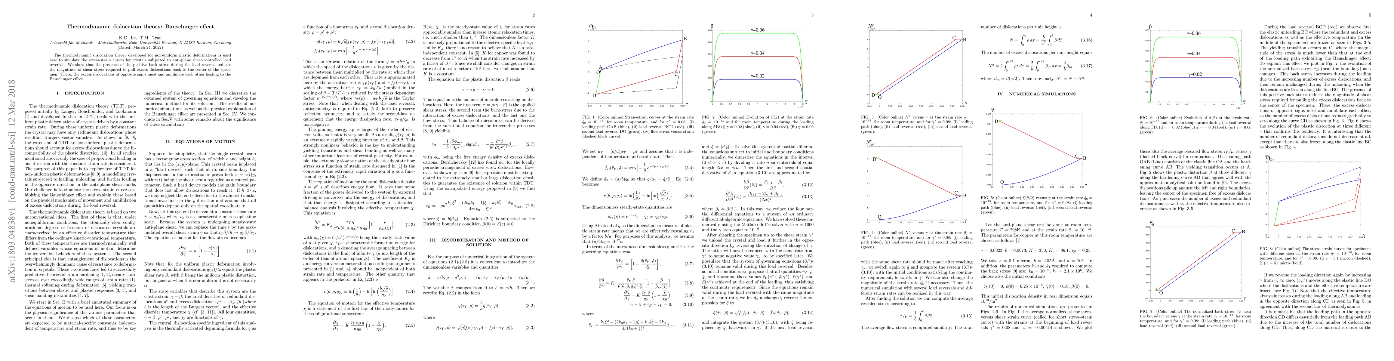 This paper applies thermodynamic dislocation theory to simulate stress-strain curves under load reversal, demonstrating that positive back stress reduces shear stress needed to pull excess dislocations back, leading to the Bauschinger effect through dislocation annihilation.