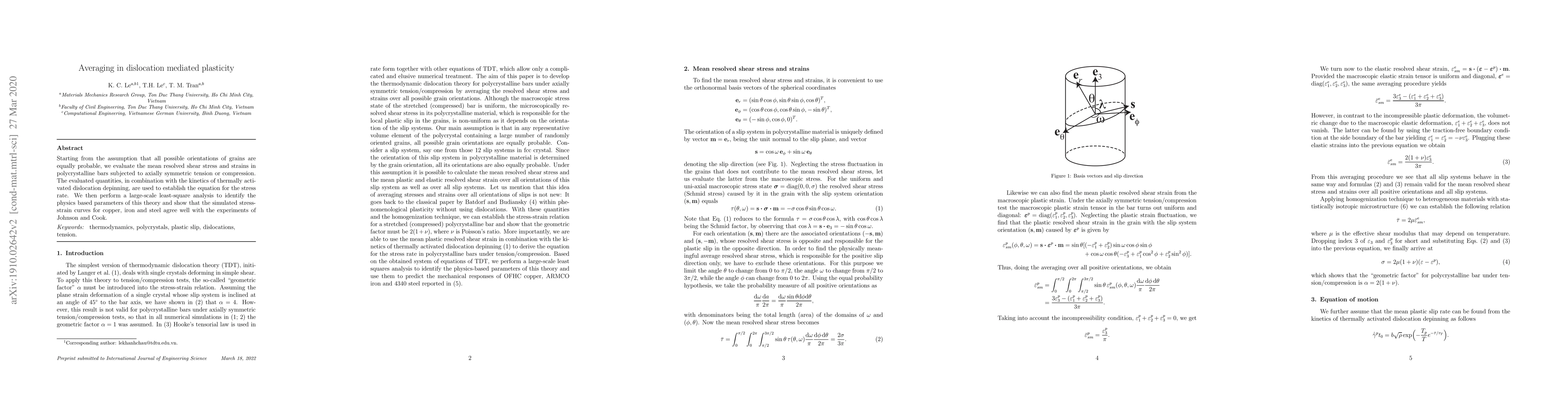 This research proves that the geometric factor in thermodynamic dislocation theory for polycrystalline materials under axial tension/compression equals 2. Using large-scale data analysis, the study validates this theory with experimental data from OFHC copper, ARMCO iron, and 4340 steel, demonstrating accurate stress-strain curve simulations.