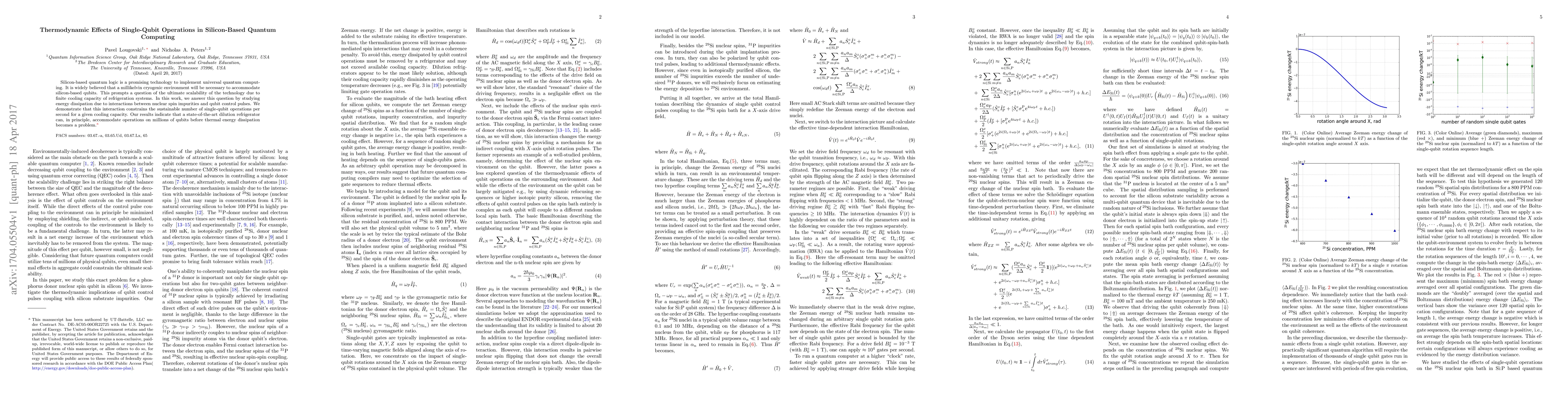 Researchers investigated energy dissipation due to nuclear spin impurities in silicon-based qubits under single-qubit operations. They found that a state-of-the-art dilution refrigerator can accommodate millions of qubits before thermal energy dissipation becomes a problem.
