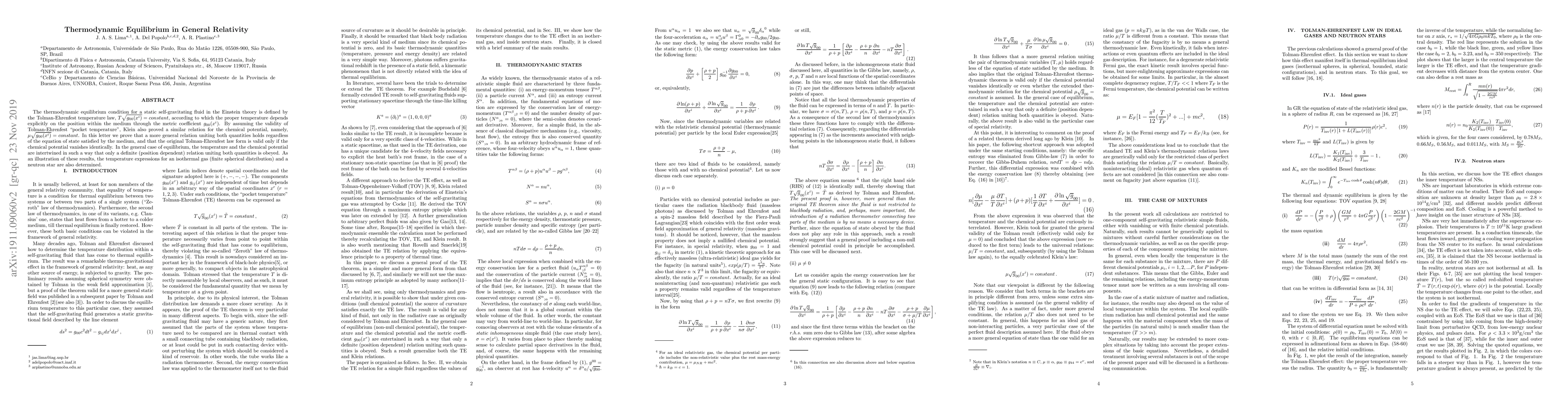 The thermodynamic equilibrium condition for a static self-gravitating fluid in the Einstein theory is defined by the Tolman-Ehrenfest temperature law, $T{\sqrt {g_{00}(x^{i})}} = constant$, according to which the proper temperature depends explicitly on the position within the medium through the metric coefficient $g_{00}(x^{i})$. By assuming the validity of Tolman-Ehrenfest "pocket temperature", Klein also proved a similar relation for the chemical potential, namely, $\mu {\sqrt {g_{00}(x^{i})}} = constant$. In this letter we prove that a more general relation uniting both quantities holds regardless of the equation of state satisfied by the medium, and that the original Tolman-Ehrenfest law form is valid only if the chemical potential vanishes identically. In the general case of equilibrium, the temperature and the chemical potential are intertwined in such a way that only a definite (position dependent) relation uniting both quantities is obeyed. As an illustration of these results, the temperature expressions for an isothermal gas (finite spherical distribution) and a neutron star are also determined.