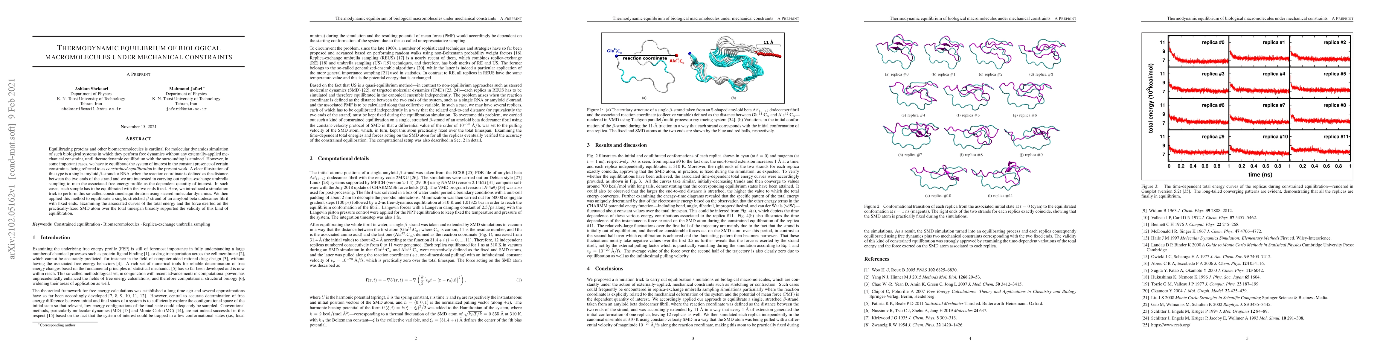 This research introduces a method using steered molecular dynamics for equilibrating biomacromolecules under mechanical constraints, exemplified by a single amyloid beta-strand with fixed ends. The validity of this constrained equilibration is supported by analyzing energy and force curves.