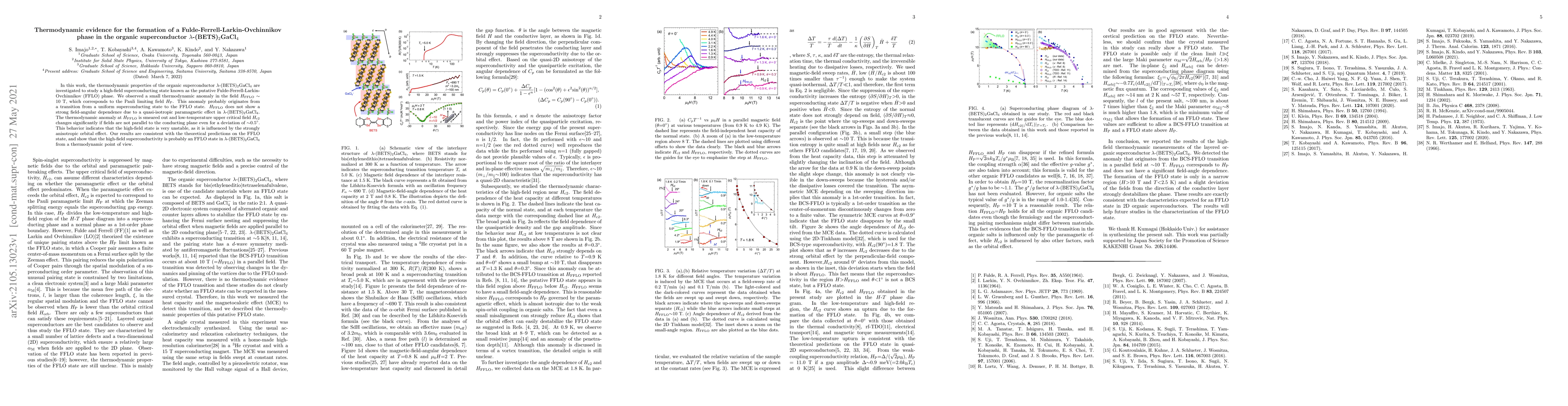 The research identifies thermodynamic evidence for a Fulde-Ferrell-Larkin-Ovchinnikov (FFLO) phase in the organic superconductor $lambda$-(BETS)$_2$GaCl$_4$. The study observes a small anomaly in field $H_{FFLO}$ around 10 T, indicative of a transition from a uniform superconducting state to the FFLO state, consistent with theoretical predictions and showing high-field superconductivity as likely an FFLO state in this material.