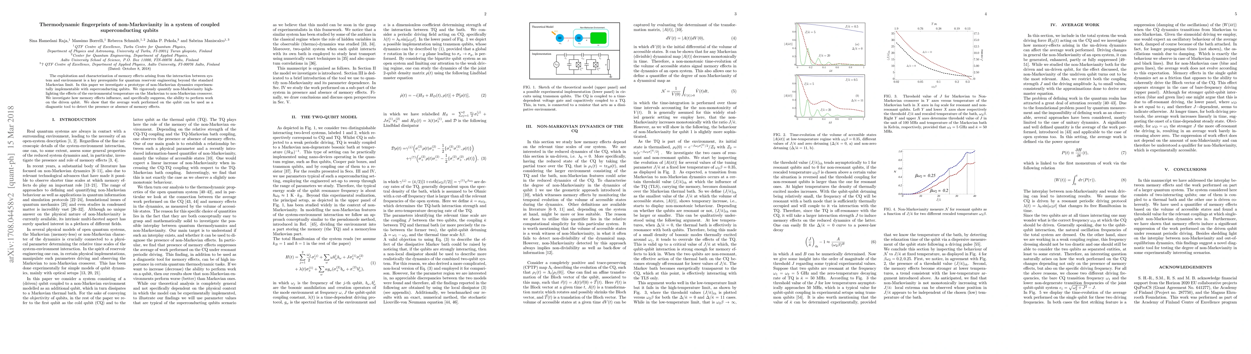The exploitation and characterization of memory effects arising from the interaction between system and environment is a key prerequisite for quantum reservoir engineering beyond the standard Markovian limit. In this paper we investigate a prototype of non-Markovian dynamics experimentally implementable with superconducting qubits. We rigorously quantify non-Markovianity highlighting the effects of the environmental temperature on the Markovian to non-Markovian crossover. We investigate how memory effects influence, and specifically suppress, the ability to perform work on the driven qubit. We show that the average work performed on the qubit can be used as a diagnostic tool to detect the presence or absence of memory effects.