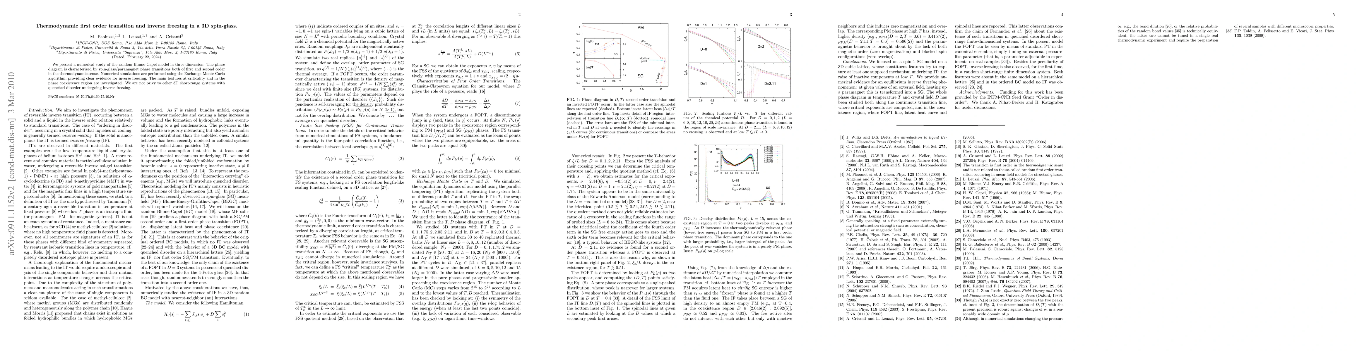 This paper investigates the thermodynamic first-order transition and inverse freezing in a 3D spin-glass using the random Blume-Capel model and Exchange-Monte Carlo simulations, revealing unique phase transitions and critical behaviors. The study finds no comparable systems with quenched disorder exhibiting inverse freezing.