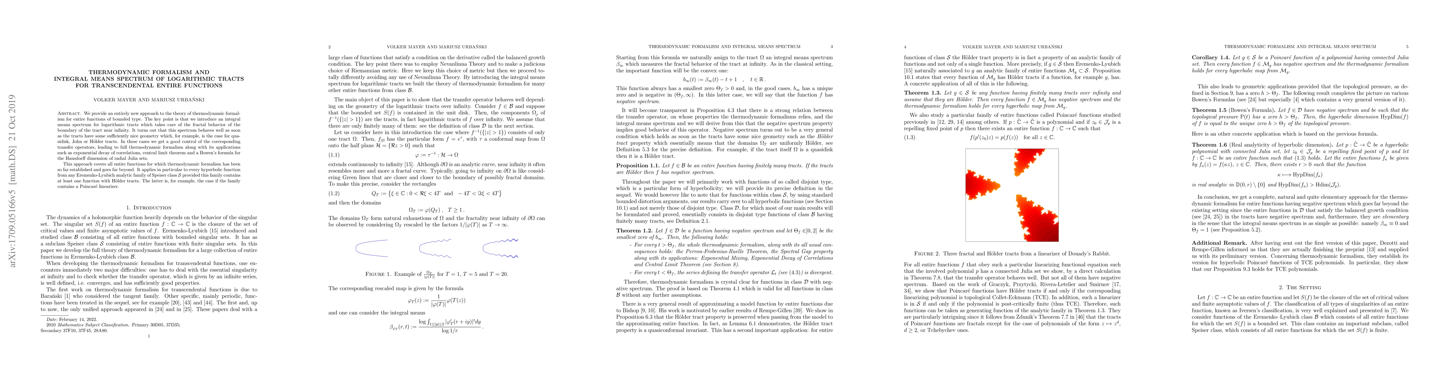 We provide the full theory of thermodynamic formalism for a very general collection of entire functions in class $\mathcal B$. This class overlaps with the collection of all entire functions for which thermodynamic formalism has been so far established and contains many new functions. The key point is that we introduce an integral means spectrum for logarithmic tracts which takes care of the fractal behavior of the boundary of the tract near infinity. It turns out that this spectrum behaves well as soon as the tracts have some sufficiently nice geometry which, for example, is the case for quasicircle, John or H\"older tracts. In this case we get a good control of the corresponding transfer operators, leading to full thermodynamic formalism along with its applications such as exponential decay of correlations, central limit theorem and a Bowen's formula for the Hausdorff dimension of radial Julia sets. Our approach applies in particular to every hyperbolic function from any Eremenko-Lyubich analytic family of Speiser class $\mathcal S$ provided this family contains at least one function with H\"older tracts. The latter is, for example, the case if the family contains a Poincar\'e linearizer.