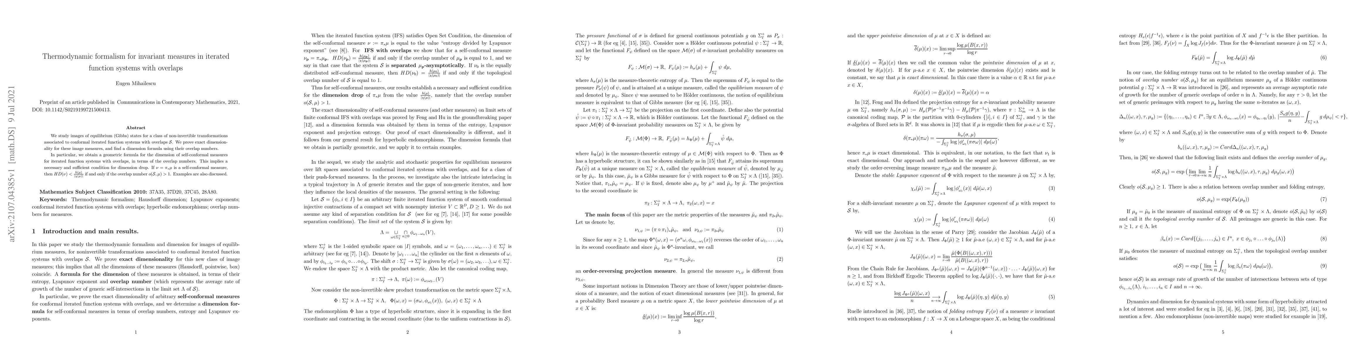 This paper investigates the thermodynamic formalism for invariant measures in non-invertible transformations of conformal iterated function systems with overlaps, proving exact dimensionality and deriving a dimension formula based on overlap numbers. It establishes a geometric formula for the dimension of self-conformal measures, providing a condition for dimension drop linked to overlap numbers.