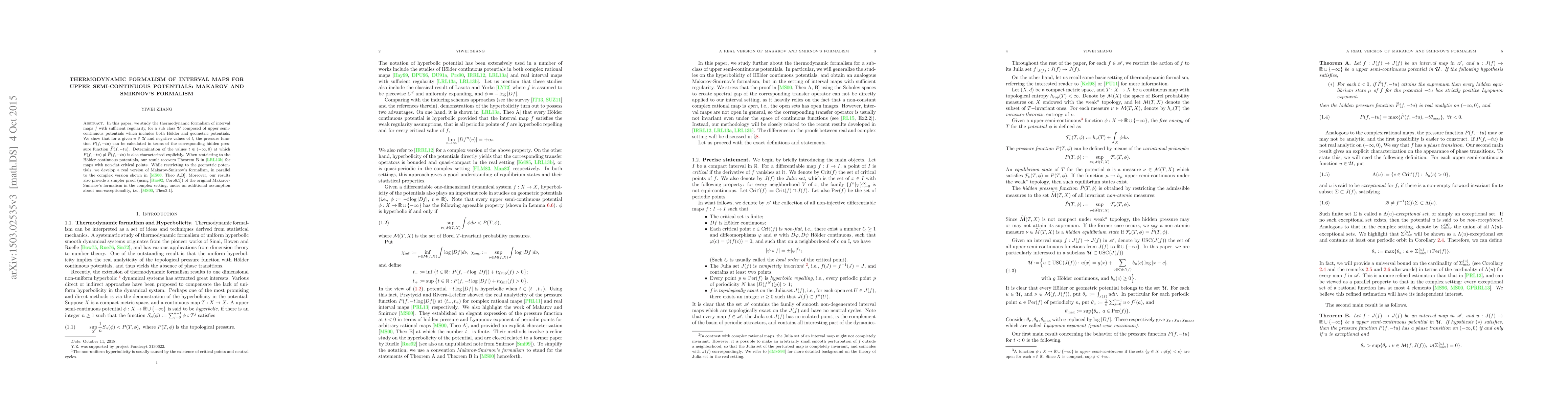 In this paper, we study the thermodynamic formalism of interval maps $f$ with sufficient regularity, for a sub class $\mathcal{U}$ composed of upper semi-continuous potentials which includes both H\"{o}lder and geometric potentials. We show that for a given $u\in \mathcal{U}$ and negative values of $t$, the pressure function $P(f,-tu)$ can be calculated in terms of the corresponding hidden pressure function $\widetilde{P}(f,-tu)$. Determination of the values $t\in(-\infty,0)$ at which $P(f,-tu)\neq \widetilde{P}(f,-tu)$ is also characterized explicitly. When restricting to the H\"{o}lder continuous potentials, our result recovers Theorem B in [Li \& Rivera-Letelier 2013] for maps with non-flat critical points. While restricting to the geometric potentials, we develop a real version of Makarnov-Smirnov's formalism, in parallel to the complex version shown in [Makarnov \& Smirnov 2000, Theo A,B]. Moreover, our results also provide a new and simpler proof (using [Ruelle 1992, Coro6.3]) of the original Makarnov-Smirnov's formalism in the complex setting, under an additional assumption about non-exceptionality, i.e., [Makarnov \& Smirnov 2000, Theo 3.1].
