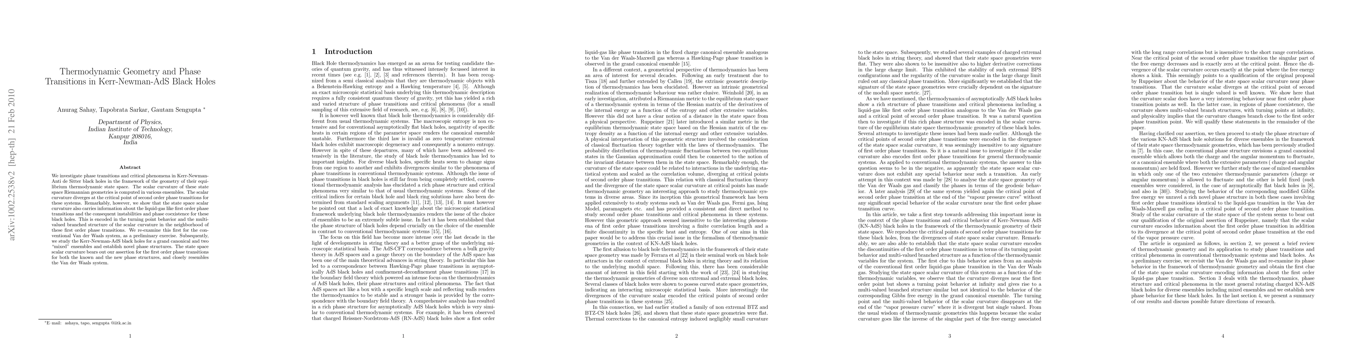 We investigate phase transitions and critical phenomena in Kerr-Newman-Anti de Sitter black holes in the framework of the geometry of their equilibrium thermodynamic state space. The scalar curvature of these state space Riemannian geometries is computed in various ensembles. The scalar curvature diverges at the critical point of second order phase transitions for these systems. Remarkably, however, we show that the state space scalar curvature also carries information about the liquid-gas like first order phase transitions and the consequent instabilities and phase coexistence for these black holes. This is encoded in the turning point behavior and the multi-valued branched structure of the scalar curvature in the neighborhood of these first order phase transitions. We re-examine this first for the conventional Van der Waals system, as a preliminary exercise. Subsequently, we study the Kerr-Newman-AdS black holes for a grand canonical and two "mixed" ensembles and establish novel phase structures. The state space scalar curvature bears out our assertion for the first order phase transitions for both the known and the new phase structures, and closely resembles the Van der Waals system.