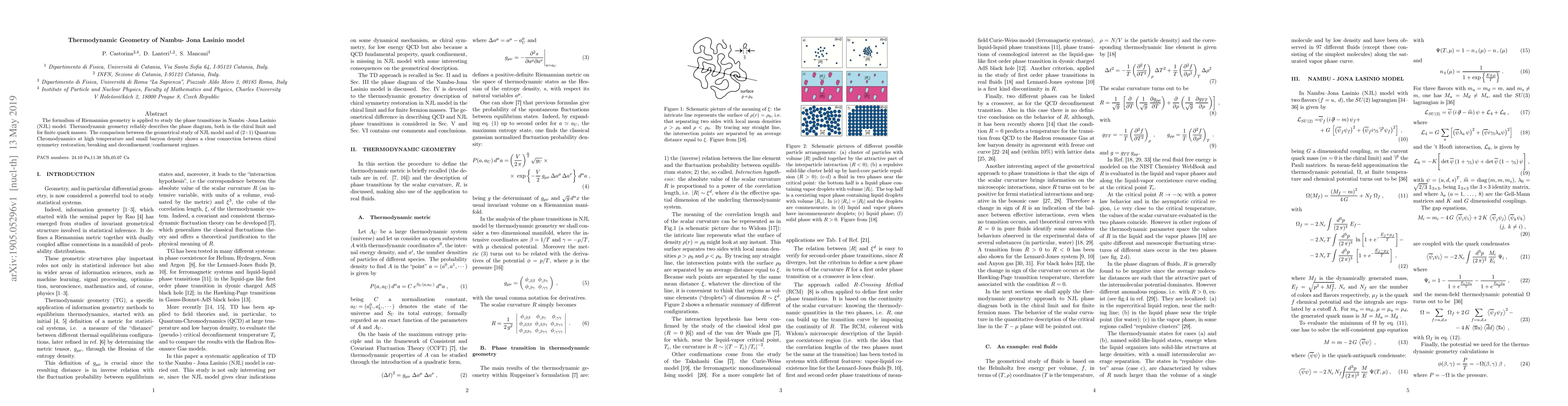 This paper applies Riemannian geometry to analyze phase transitions in the Nambu-Jona Lasinio model, showing it accurately describes the phase diagram. It reveals a clear link between chiral symmetry and deconfinement/confinement regimes, comparable to (2+1) Quantum Chromodynamics.