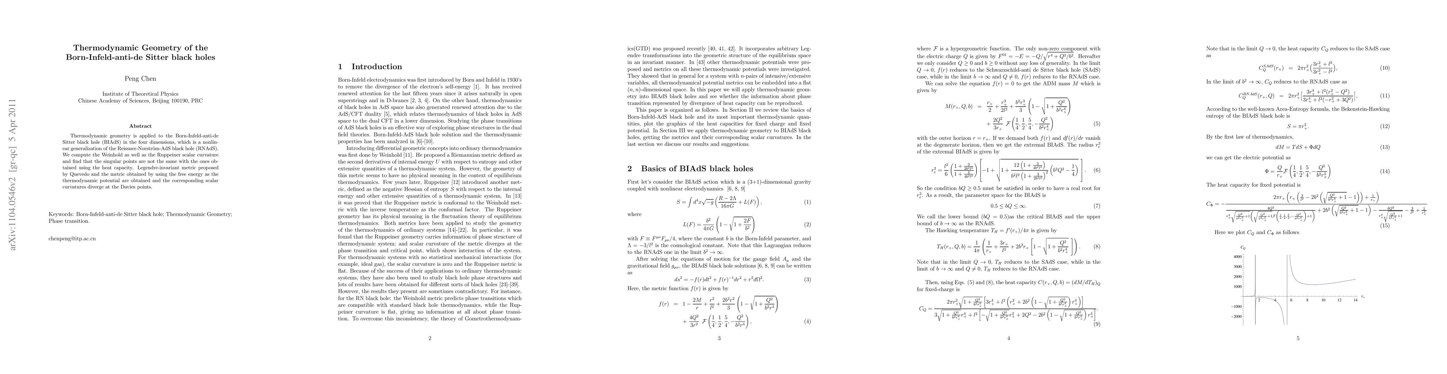 This paper applies thermodynamic geometry to Born-Infeld-anti-de Sitter black holes, finding that the singular points differ between methods, with both diverging at the Davies points.