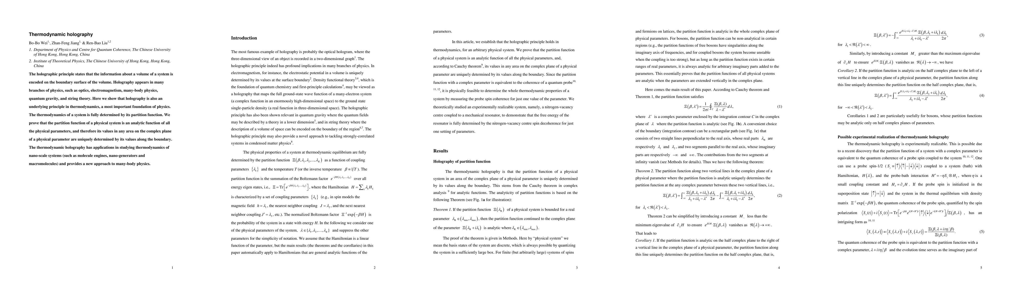 Researchers prove that a system's thermodynamics is fully determined by its partition function, which can be uniquely decoded from the boundary conditions, revealing a holographic principle in thermodynamics.