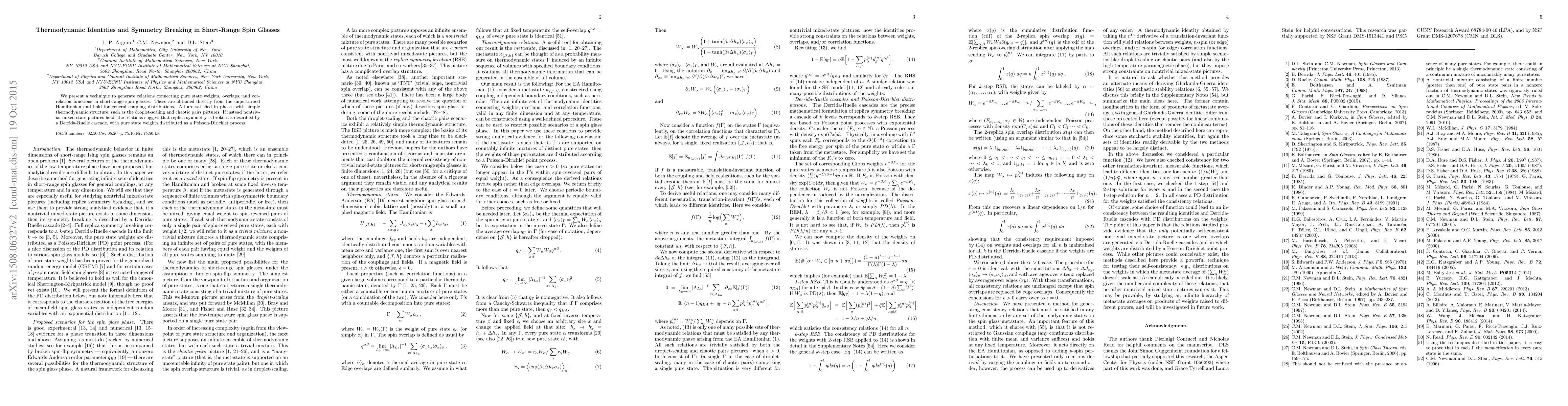 This paper develops a method to derive thermodynamic identities in short-range spin glasses from the unperturbed Hamiltonian, applicable to various coupling distributions. It reveals that these identities indicate replica symmetry breaking in phases with nontrivial mixed-state pictures, following a Derrida-Ruelle cascade.