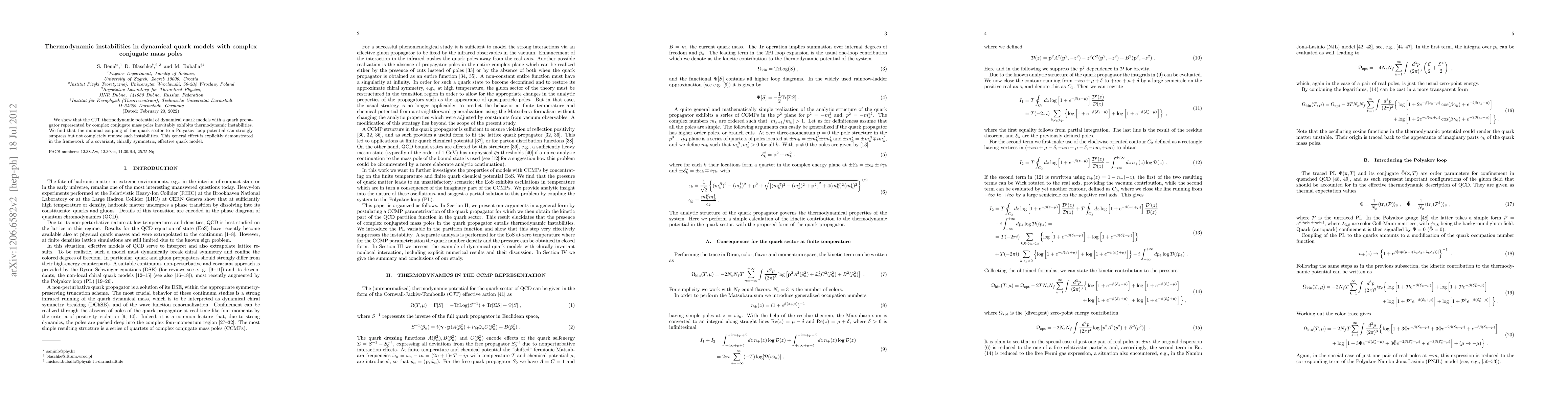 We show that the CJT thermodynamic potential of dynamical quark models with a quark propagator represented by complex conjugate mass poles inevitably exhibits thermodynamic instabilities. We find that the minimal coupling of the quark sector to a Polyakov loop potential can strongly suppress but not completely remove such instabilities. This general effect is explicitly demonstrated in the framework of a covariant, chirally symmetric, effective quark model.
