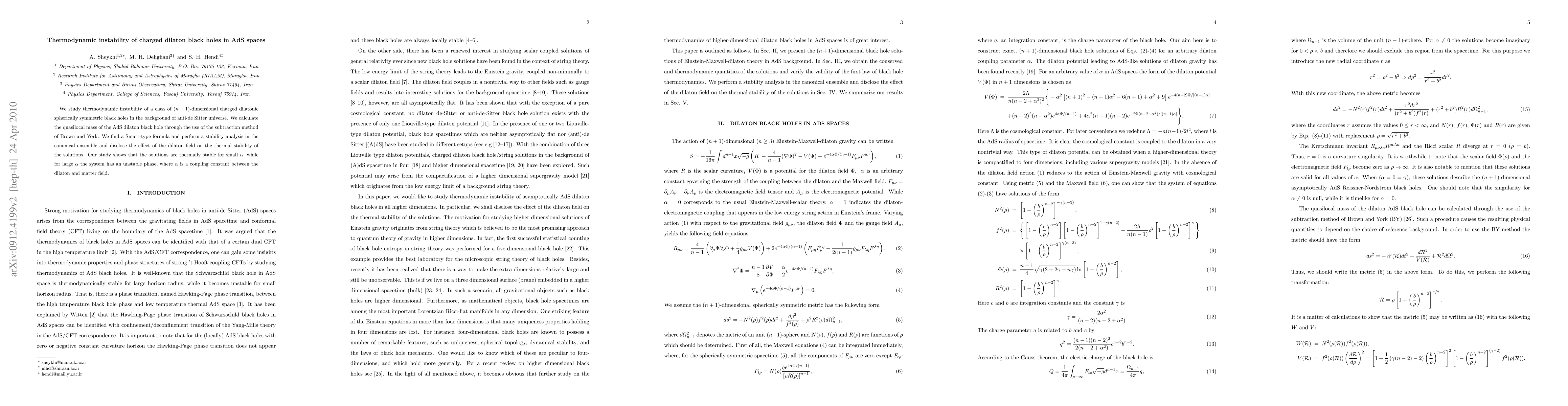 This paper investigates thermodynamic instability in $(n+1)$-dimensional charged dilaton black holes in anti-de Sitter (AdS) spaces, revealing that the solutions are thermally stable for small coupling constants but exhibit instability for large values. The analysis employs the quasilocal mass and a Smarr-type formula.