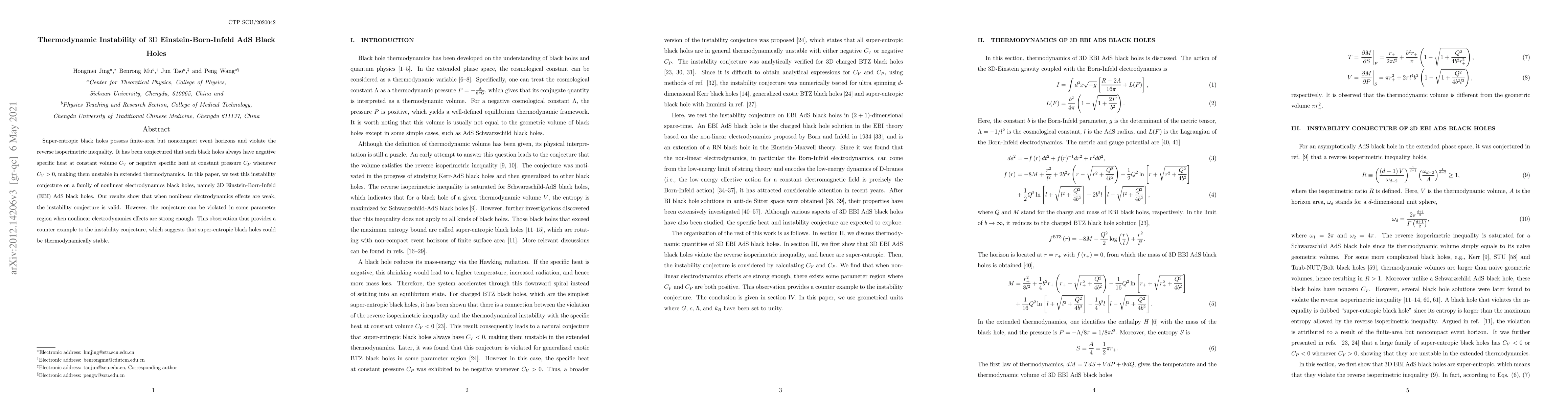 This research examines the thermodynamic stability of 3D Einstein-Born-Infeld AdS black holes, showing that while weak nonlinear electrodynamics effects uphold the instability conjecture, strong effects can lead to thermodynamic stability, disproving the conjecture in certain parameter regions.
