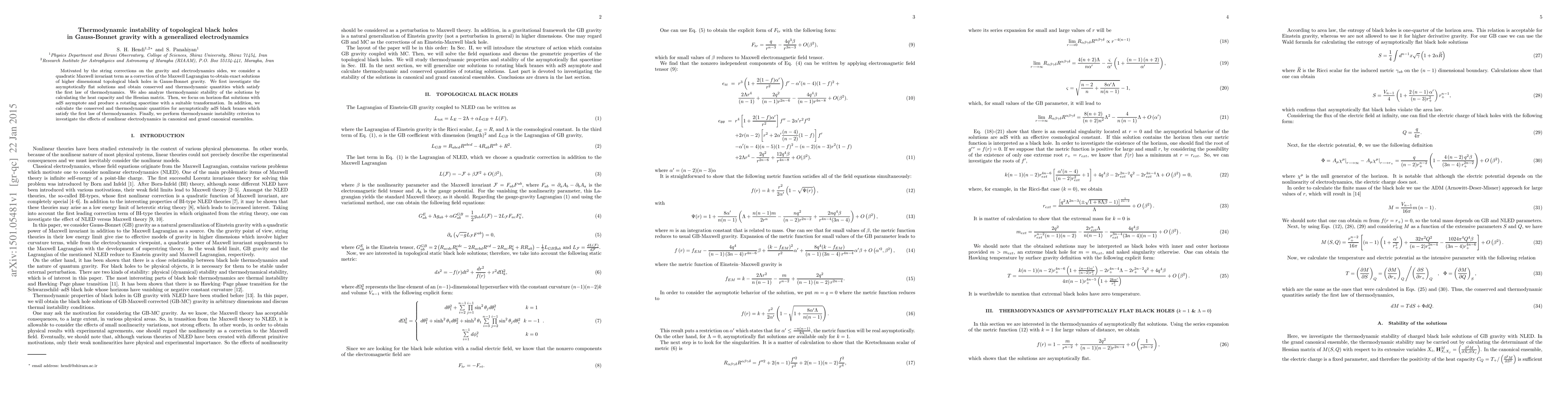 Motivated by the string corrections on the gravity and electrodynamics sides, we consider a quadratic Maxwell invariant term as a correction of the Maxwell Lagrangian to obtain exact solutions of higher dimensional topological black holes in Gauss-Bonnet gravity. We first investigate the asymptotically flat solutions and obtain conserved and thermodynamic quantities which satisfy the first law of thermodynamics. We also analyze thermodynamic stability of the solutions by calculating the heat capacity and the Hessian matrix. Then, we focus on horizon-flat solutions with adS asymptote and produce a rotating spacetime with a suitable transformation. In addition, we calculate the conserved and thermodynamic quantities for asymptotically adS black branes which satisfy the first law of thermodynamics. Finally, we perform thermodynamic instability criterion to investigate the effects of nonlinear electrodynamics in canonical and grand canonical ensembles.