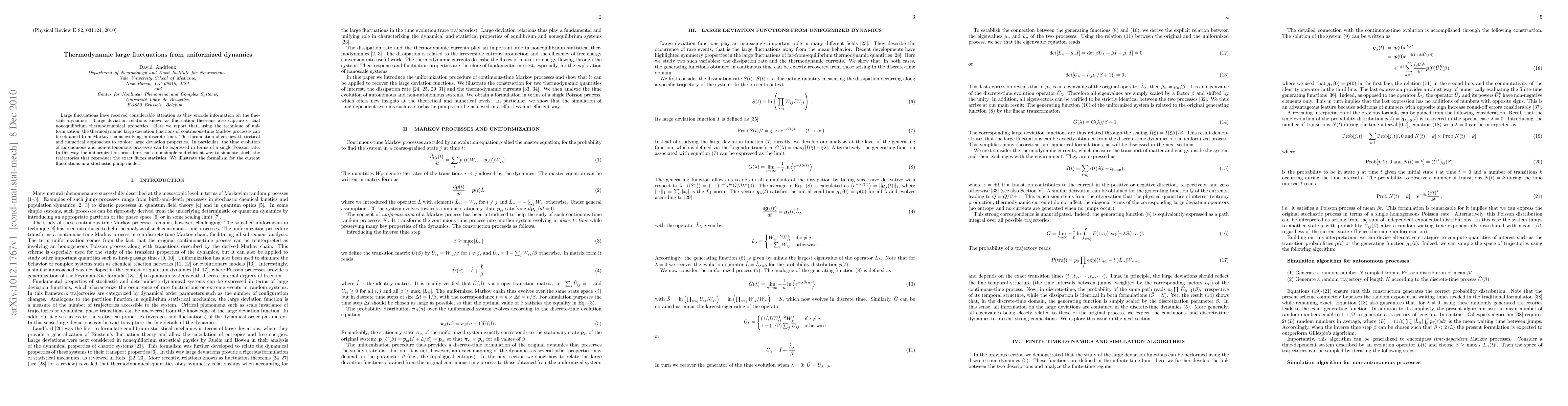 This paper presents a method using uniformization to derive thermodynamic large deviation functions from discrete-time Markov chains, enabling efficient simulation of stochastic trajectories and capturing nonequilibrium thermodynamic properties. The approach simplifies the modeling of both autonomous and non-autonomous processes through a single Poisson rate.