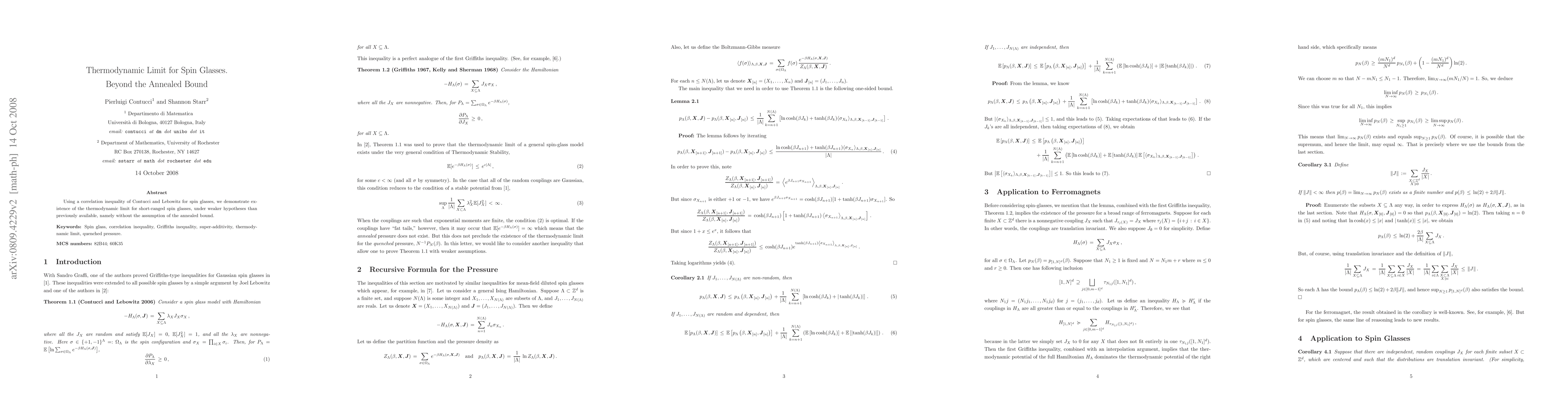 Using a correlation inequality of Contucci and Lebowitz for spin glasses, we demonstrate existence of the thermodynamic limit for short-ranged spin glasses, under weaker hypotheses than previously available, namely without the assumption of the annealed bound.