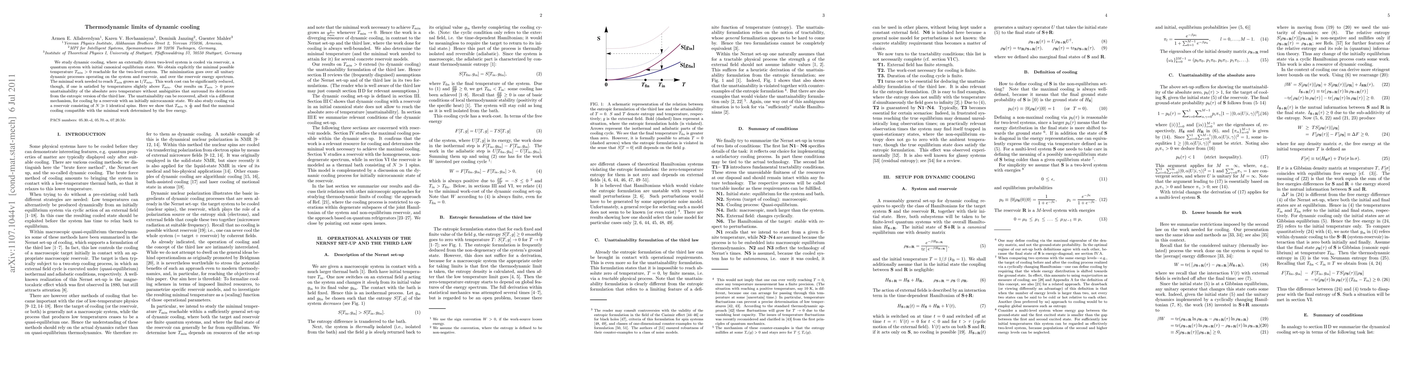 We study dynamic cooling, where an externally driven two-level system is cooled via reservoir, a quantum system with initial canonical equilibrium state. We obtain explicitly the minimal possible temperature $T_{\rm min}>0$ reachable for the two-level system. The minimization goes over all unitary dynamic processes operating on the system and reservoir, and over the reservoir energy spectrum. The minimal work needed to reach $T_{\rm min}$ grows as $1/T_{\rm min}$. This work cost can be significantly reduced, though, if one is satisfied by temperatures slightly above $T_{\rm min}$. Our results on $T_{\rm min}>0$ prove unattainability of the absolute zero temperature without ambiguities that surround its derivation from the entropic version of the third law. The unattainability can be recovered, albeit via a different mechanism, for cooling by a reservoir with an initially microcanonic state. We also study cooling via a reservoir consisting of $N\gg 1$ identical spins. Here we show that $T_{\rm min}\propto\frac{1}{N}$ and find the maximal cooling compatible with the minimal work determined by the free energy.