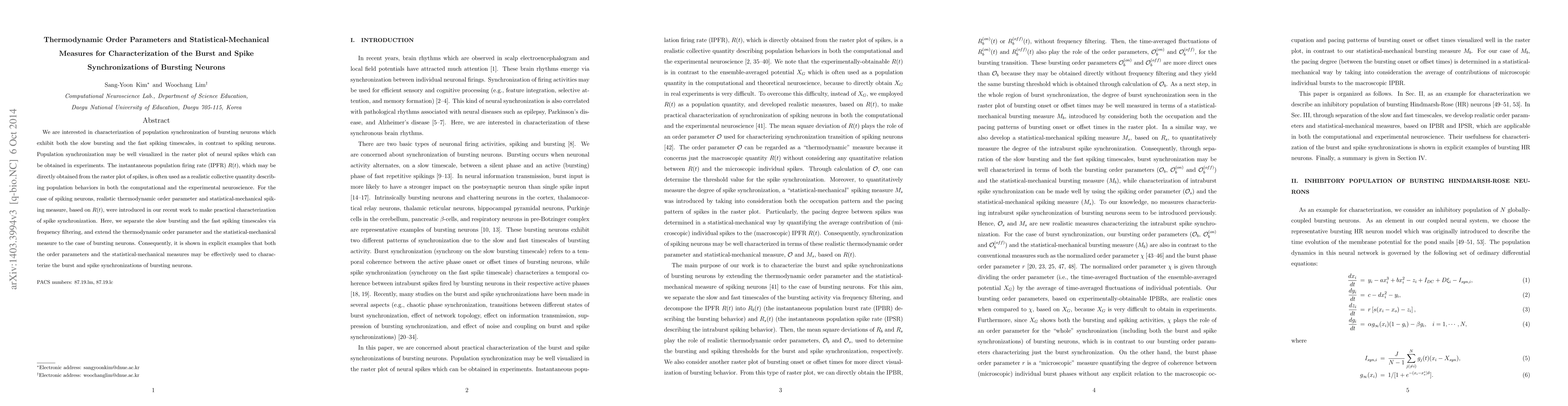 This paper introduces thermodynamic order parameters and statistical-mechanical measures to characterize the synchronization of bursting neurons, which exhibit both slow bursting and fast spiking. These measures extend previous work on spiking neurons and effectively characterize burst and spike synchronizations.