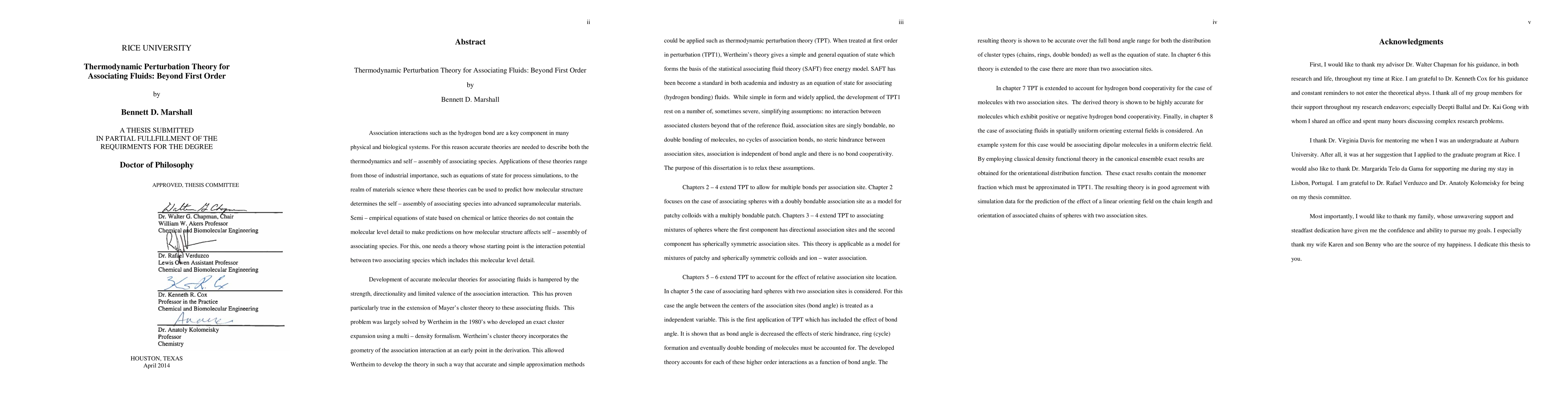 This document outlines the development of numerous new theoretical approaches to model associating fluids. For a detailed abstract please see page ii.