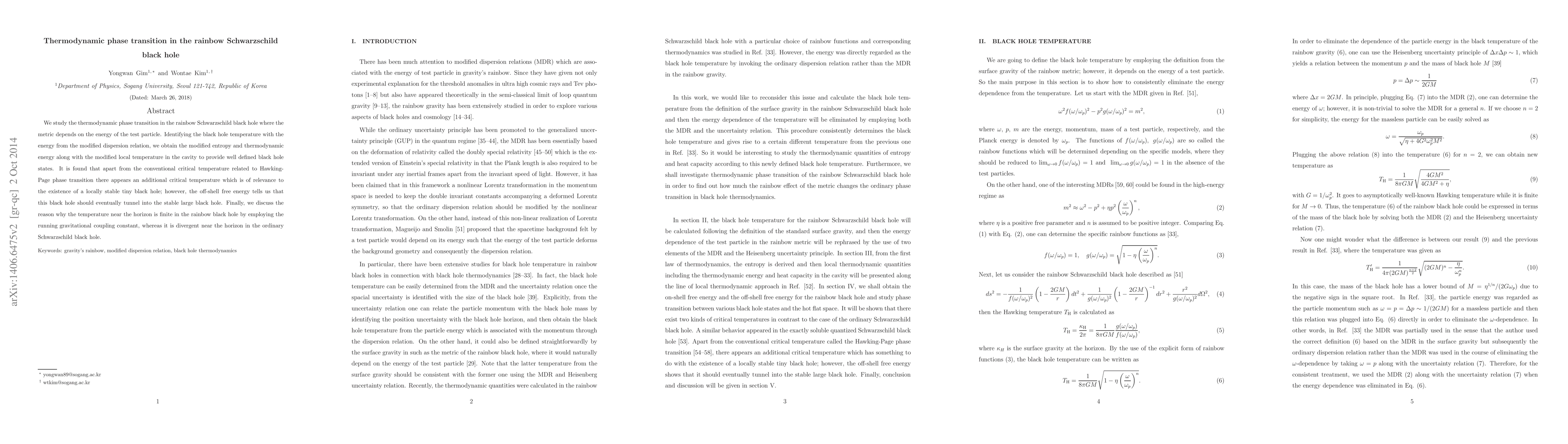 This paper investigates thermodynamic phase transitions in the rainbow Schwarzschild black hole, revealing an additional critical temperature relevant to a locally stable tiny black hole. It employs a modified dispersion relation to define black hole states and discusses the finite temperature near the horizon due to a running gravitational coupling constant.