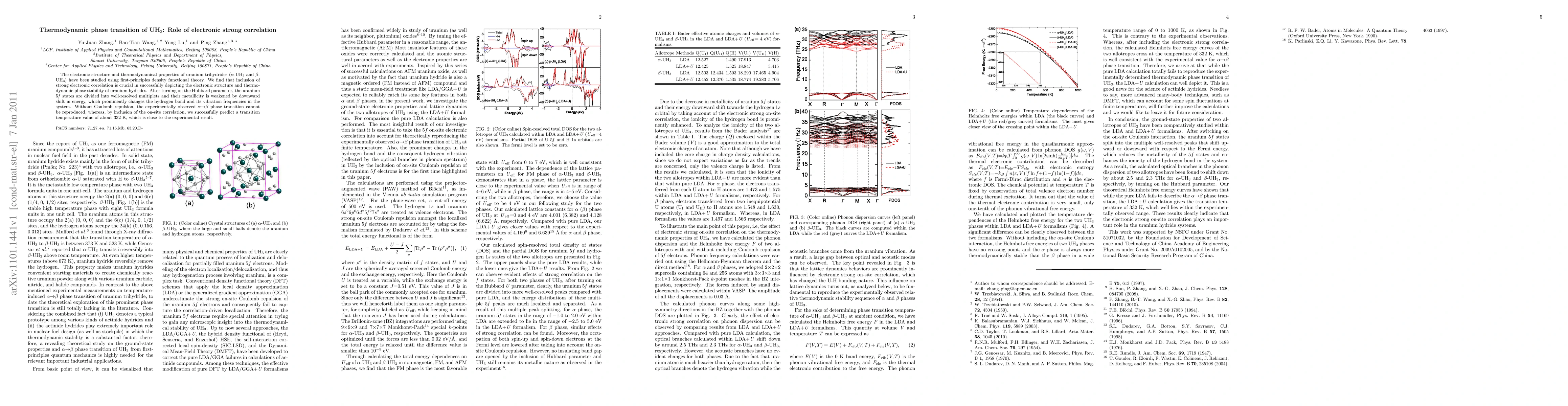 The electronic structure and thermodynamical properties of uranium trihydrides ($\alpha$-UH$_{3}$ and $\beta$-UH$_{3}$) have been studied using first-principles density functional theory. We find that inclusion of strong electronic correlation is crucial in successfully depicting the electronic structure and thermodynamic phase stability of uranium hydrides. After turning on the Hubbard parameter, the uranium 5f states are divided into well-resolved multiplets and their metallicity is weakened by downward shift in energy, which prominently changes the hydrogen bond and its vibration frequencies in the system. Without Coulomb repulsion, the experimentally observed $\alpha\mathtt{\rightarrow}\beta$ phase transition cannot be reproduced, whereas, by inclusion of the on-site correlation, we successfully predict a transition temperature value of about 332 K, which is close to the experimental result.