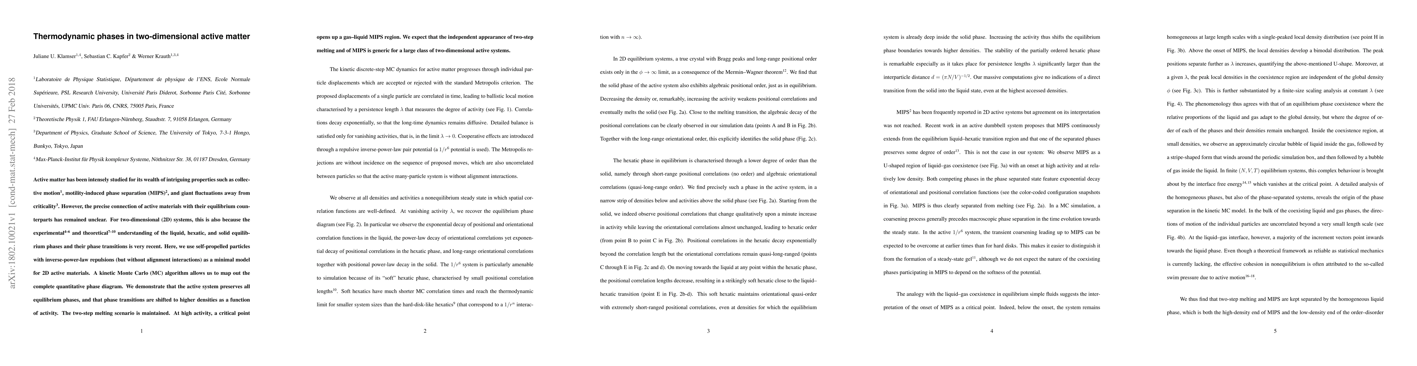 Researchers mapped out the phase diagram of 2D active matter, finding that it preserves three equilibrium phases and exhibits shifted phase transitions with increased activity. This work provides new insights into the behavior of active systems, potentially applicable to a wide range of two-dimensional active materials.