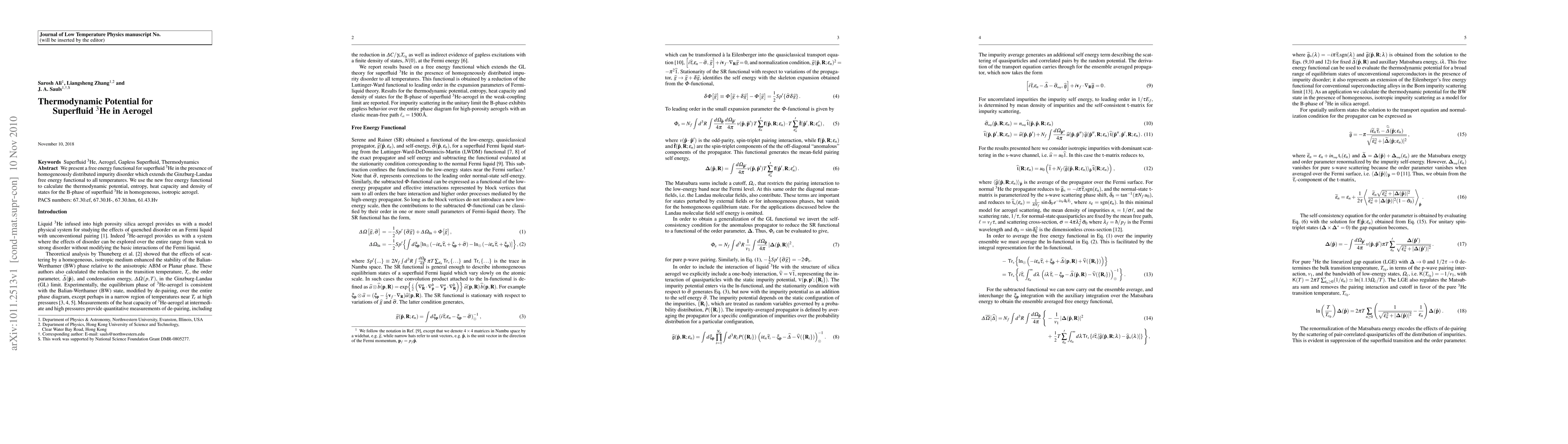 The research used a quasiclassical reduction of the Luttinger-Ward functional to obtain an ensemble-averaged free energy functional for superfluid 3He in the presence of homogeneous, isotropic impurity disorder.