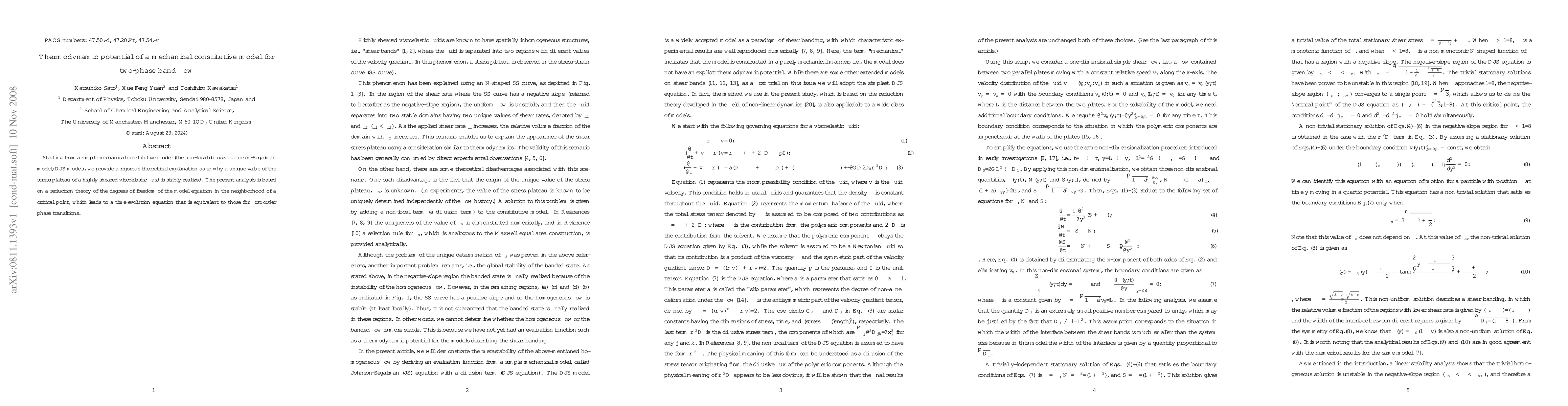 Starting from a simple mechanical constitutive model (the non-local diffusive Johnson-Segalman model; DJS model), we provide a rigorous theoretical explanation as to why a unique value of the stress plateau of a highly sheared viscoelastic fluid is stably realized. The present analysis is based on a reduction theory of the degrees of freedom of the model equation in the neighborhood of a critical point, which leads to a time-evolution equation that is equivalent to those for first-order phase transitions.