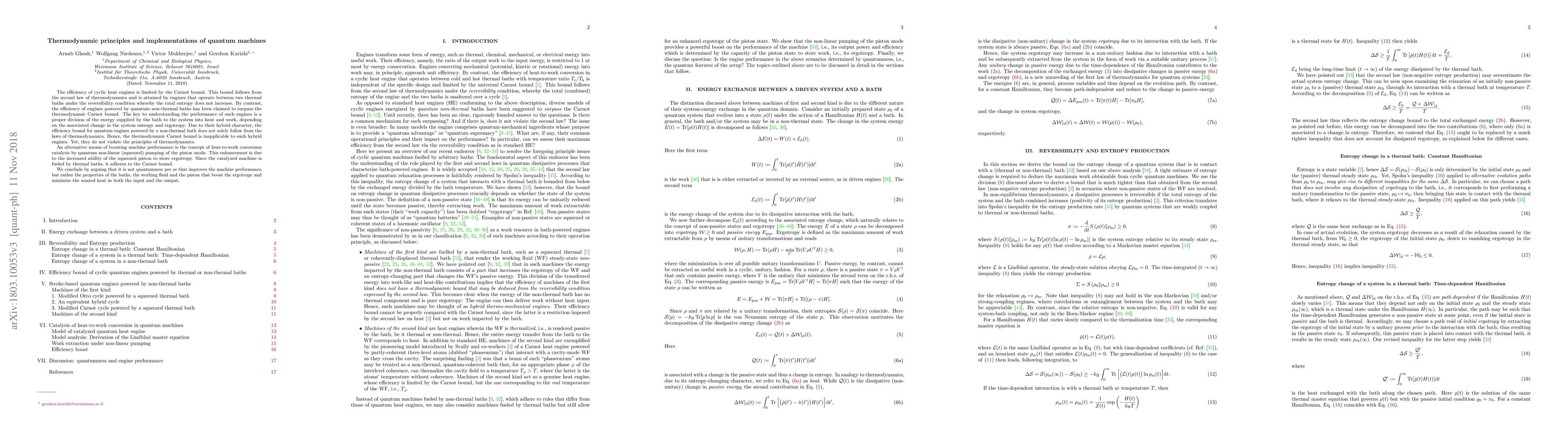 The efficiency of cyclic heat engines is limited by the Carnot bound. This bound follows from the second law of thermodynamics and is attained by engines that operate between two thermal baths under the reversibility condition whereby the total entropy does not increase. By contrast, the efficiency of engines powered by quantum non-thermal baths has been claimed to surpass the thermodynamic Carnot bound. The key to understanding the performance of such engines is a proper division of the energy supplied by the bath to the system into heat and work, depending on the associated change in the system entropy and ergotropy. Due to their hybrid character, the efficiency bound for quantum engines powered by a non-thermal bath does not solely follow from the laws of thermodynamics. Hence, the thermodynamic Carnot bound is inapplicable to such hybrid engines. Yet, they do not violate the principles of thermodynamics. An alternative means of boosting machine performance is the concept of heat-to-work conversion catalysis by quantum non-linear (squeezed) pumping of the piston mode. This enhancement is due to the increased ability of the squeezed piston to store ergotropy. Since the catalyzed machine is fueled by thermal baths, it adheres to the Carnot bound. We conclude by arguing that it is not quantumness per se that improves the machine performance, but rather the properties of the baths, the working fluid and the piston that boost the ergotropy and minimize the wasted heat in both the input and the output.
