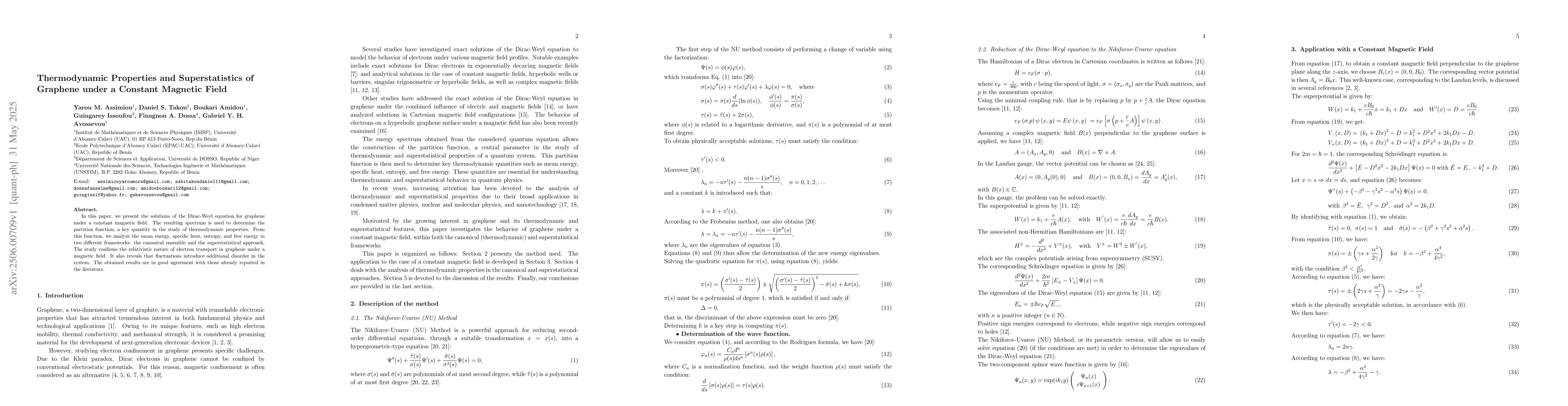 Research on graphene under a constant magnetic field reveals its relativistic nature and shows how fluctuations introduce additional disorder, leading to improved understanding of thermodynamic properties.